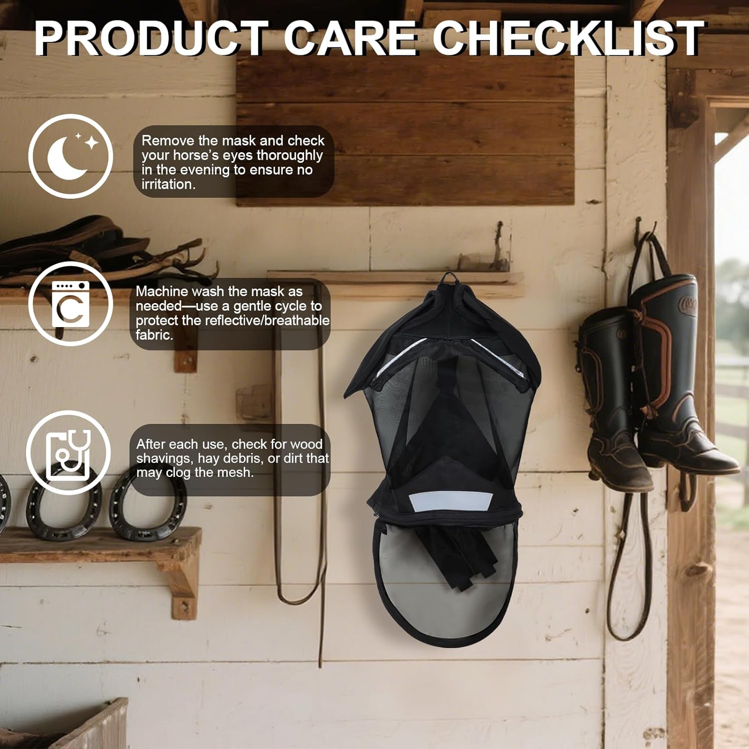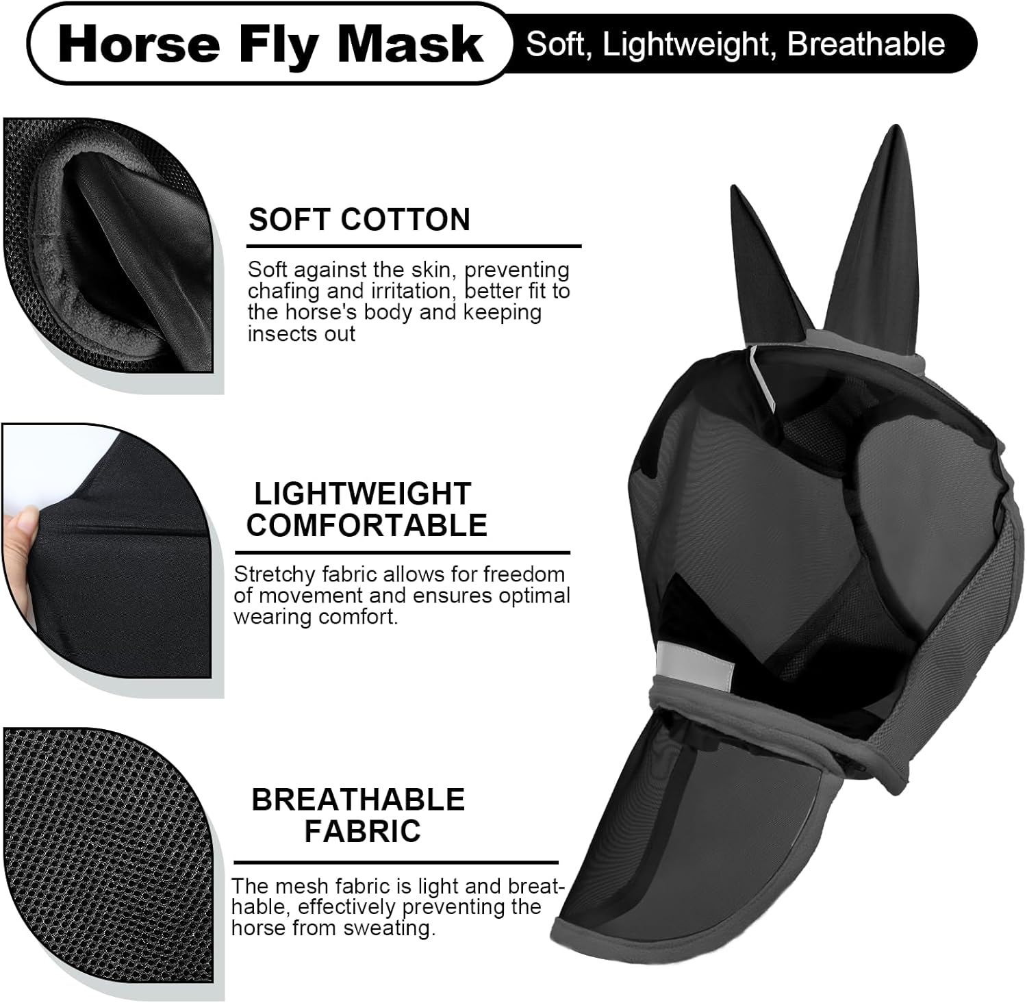 - Included Components: Horse Fly Mask