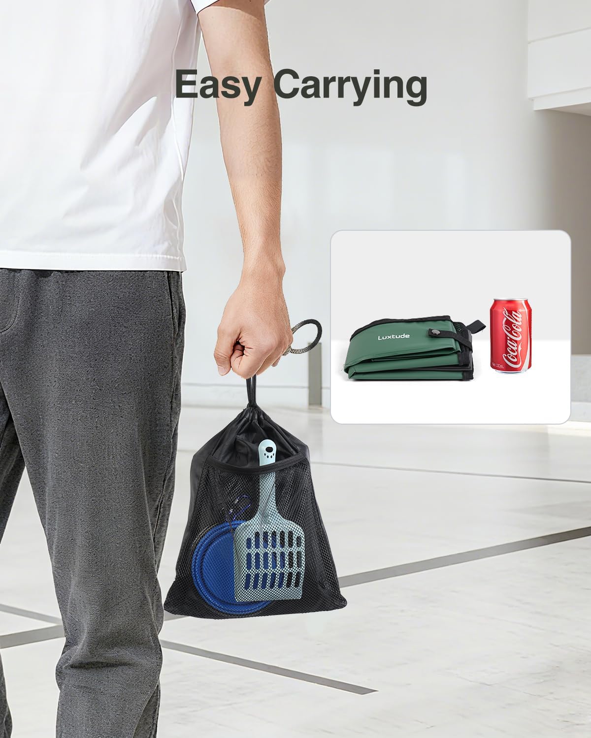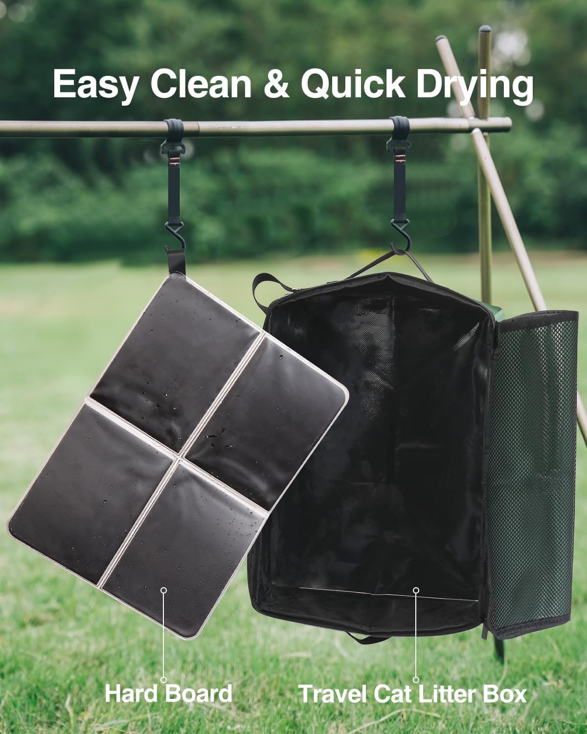 About this item 【Waterproof and Easy Clean】Crafted with professional PVC waterproof material, this travel cat litter box delivers top-tier stain-resistant, waterproof and leakproof performance—it cleans easily with just a damp cloth wipe, dries fast, and leaves no lingering smells 【Portable and Easy Carrying】With collapsible design, it is compact and can be easily placed in backpacks, suitcases, or travel bags. Available in two sizes: Medium (16x12x4.5 inches) and Large (19.7x15.8x5.1 inches). We’ve also got a storage bag for you. You can easily put your cat litter box, litter scoop and folding bowl in it, then grab them whenever you need to take your cat out. It’s light, so taking it with your cat out is way easier 【No Sewing, No Odor】To solve the problem of residual cat urine odor in portable cat litter boxes, we use a special hot-press process instead of sewing, and the material of the collapsible litter box has no pores. So when you clean it, there’s nowhere for leftover smells to hide—just rinse it, and all odors are gone. Unlike other Oxford cloth folding litter boxes that have pores or sewing lines (which trap smells and absorb odor), our cat travel litter box stays fresh every time you reuse it—say goodbye to musty fabric odors 【Travel Litter Box with Lid】When you’re ready to check out of the hotel and want to take the folded litter box with cat litter inside, just zip it up, grab its built-in handle, and you can easily carry it to your next stop. The lidded design also keeps odors in check, so your hotel room or car stays fresh—making traveling with your cat way more comfortable 【Sturdy and Collapsible Litter Box】This travel litter box for cats blends portability with sturdiness: reinforced sides add extra sturdiness, and a removable hard bottom panel keeps it firm when unfolded, the portable cat litter box also easy to fold for storage and easy carrying 【Travel Essentials for Cats】Specially designed for cat lovers, this travel cat litter box can be used at home, in the car, at hotels, or while camping. It also makes a wonderful gift for them on Christmas, Thanksgiving, Valentine's Day, and other special occasions › See more product details