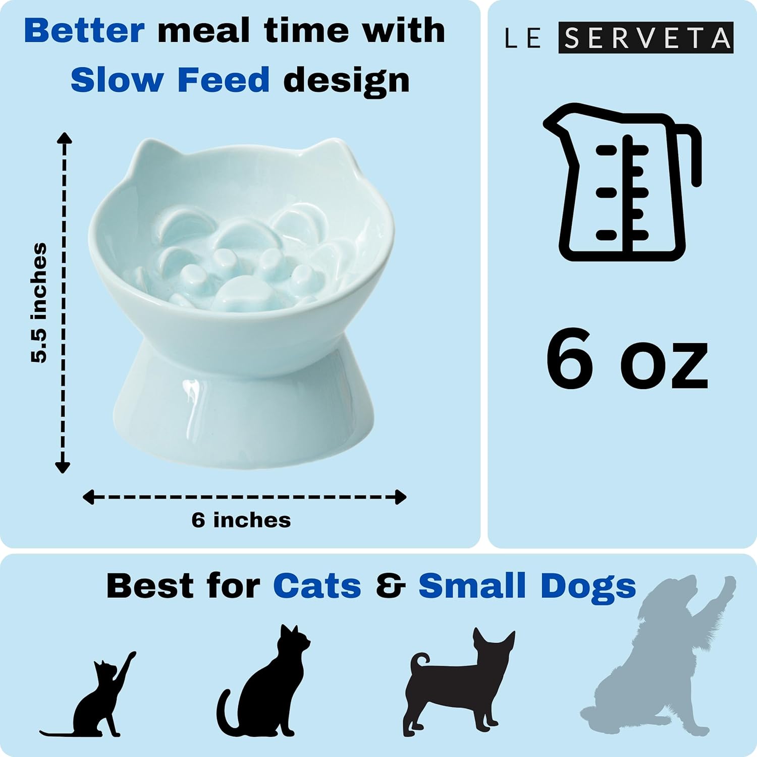 About this item 1) Prevents Overeating: Le Serveta's slow feeder cat bowl effectively prevents cats from eating too quickly, reducing the risk of health issues like vomiting, regurgitation, and obesity. This cat slow feeder is ideal for maintaining a healthy feeding pace. 2) Reduces Neck Strain: Crafted with your pet's comfort in mind, our raised cat bowl combines elevation and slow feeding design, providing a more ergonomic eating position that reduces stress on your pet's spine. 3) Prevent Whisker Fatigue: The wide, elevated, and shallow design of our ceramic cat bowl prevents whisker fatigue, promoting a healthy and clean eating environment for your feline friend. These cute cat bowls are both functional and stylish. 4) Raised Heart Design: Le Serveta’s interactive slow cat feeder adds an element of fun to mealtimes while helping to reduce your pet's behavioral concerns. The intricate pattern extends mealtimes, enhancing digestion with this cat slow feeder bowl. 5) High-Quality Ceramic: Le Serveta ceramic slow feeder cat bowls are made from premium materials designed to withstand the test of time. Our sturdy and cute cat bowls resist scratches and prevent tip-overs, ensuring durability. Microwave and dishwasher safe, these bowls offer both convenience and style. 6) Elegance Meets Functionality: Our raised ceramic cat bowl complements your home décor with its elegant Cat Face design and Macaron Coating outside the bowl, making these tall cat bowls elevated not only practical but also stylish. › See more product details