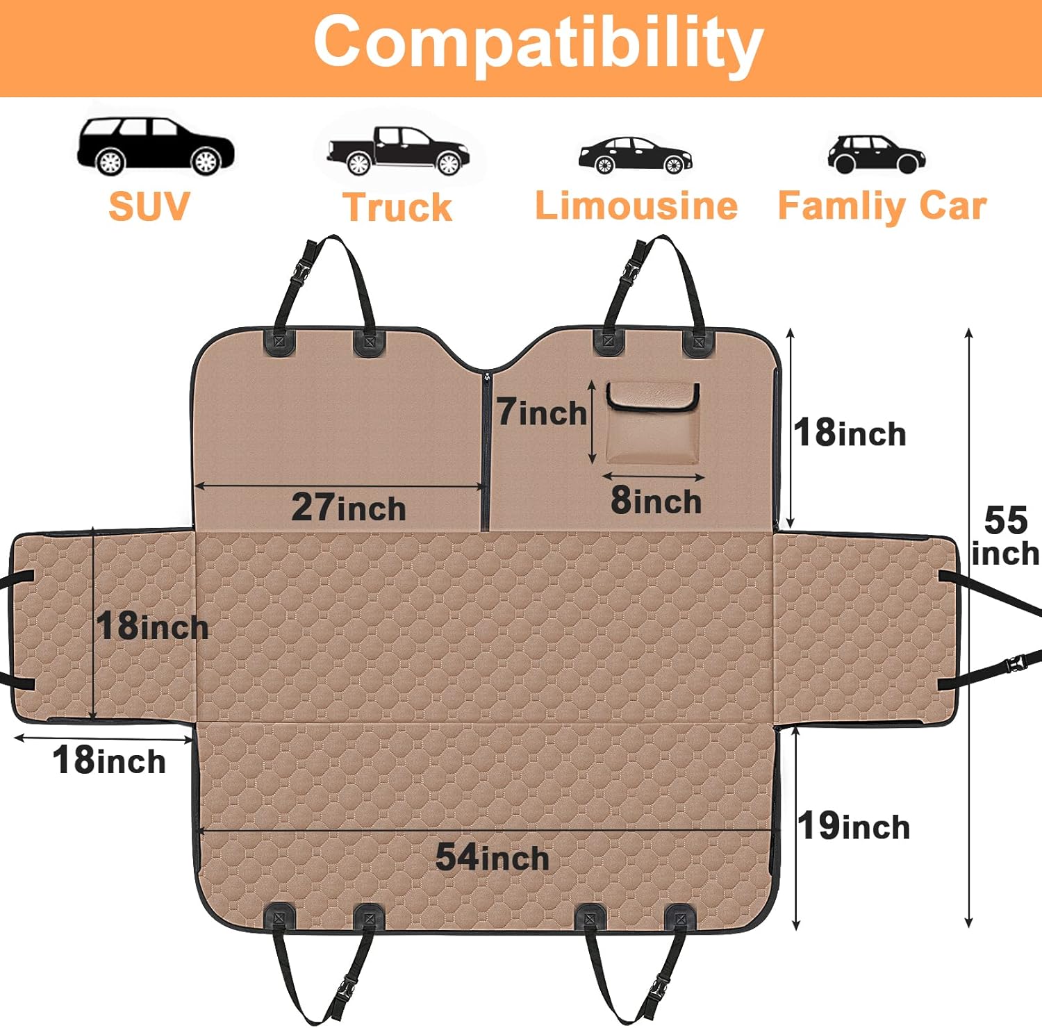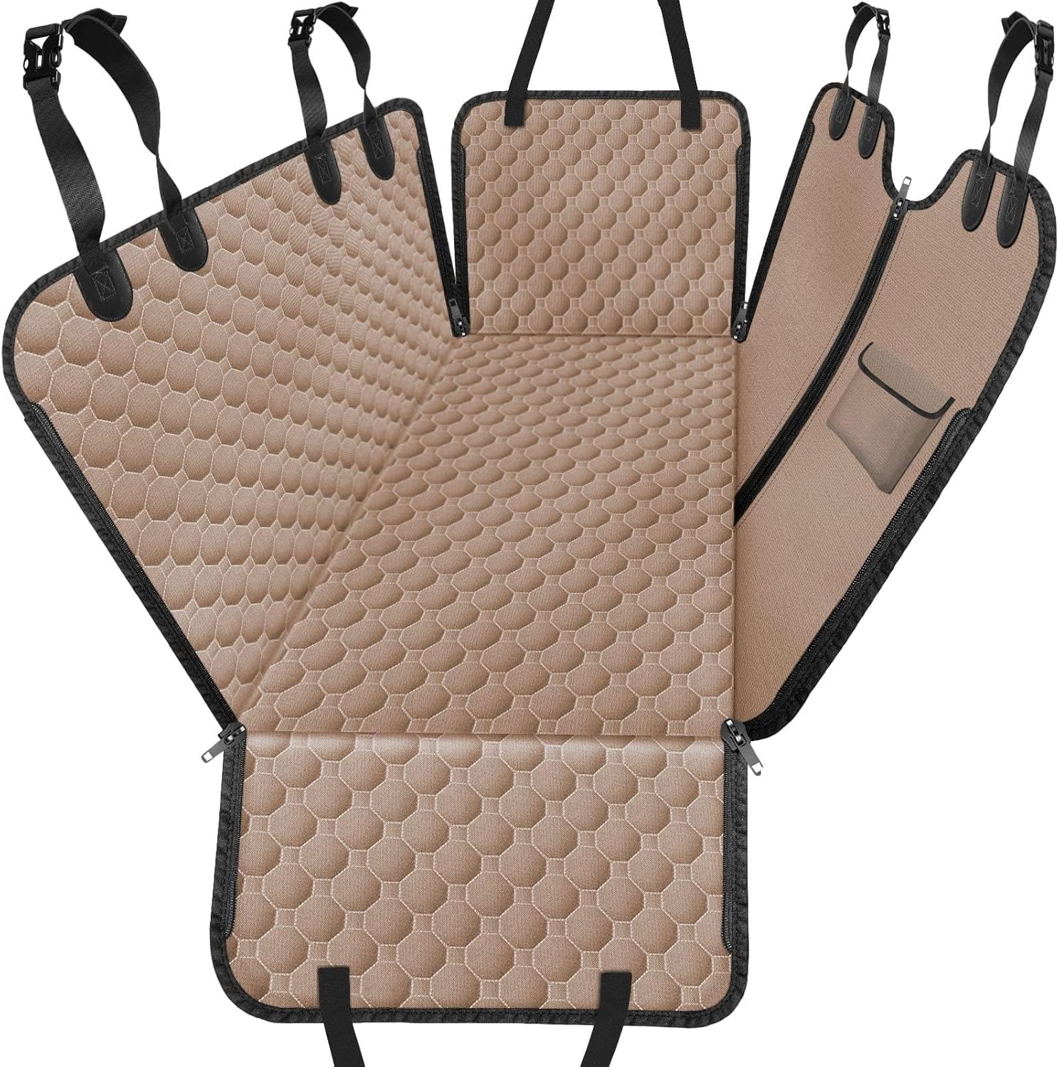 About this item Waterproof & Scratch-Resistant: Mancro dog car seat cover for back seat crafted from durable 600D materials(2025 upgraded), providing more powerful protection performance, still worried about the claw marks on the side door by your furry friend? The dog hammock for car features 2 side flaps to prevent your beloved vehicle from scraping and biting, supply your pets with comfort while keeping your vehicle interior safe from scratches, fur, and urine Fit for Most Vehicle Size: Our dog car seat cover 54" W x 55” L (Maximum open size) can cover the entire back seat designed for most cars, trucks and SUVs,recommend that truck and Large SUV models choose X-large sized dog car seat cover Nonslip and Safe: We understand the importance of stability, so our car seat protector have made the following designs, PVE nonslip underside keeps the dog car rear seat cover securely in place, our side flap buckles, seal zipper, seat anchors, and velcro opening for safety belts ensure stability and safety for your pet Easy Install and Clean: Just takes seconds to remove or install the dog back seat cover. You can learn how to install it quickly by watching our video. Tired of massive hair, liquid, and dirt? Easy to clean with a damp cloth or vacuum. The back seat pet cover for dogs is great gifts for every pet lover 4-in-1 Multifunctional: The dog seat cover is designed not only as a dog hammock with side wings, but also as a bench car seat cover protector, or a trunk cargo liner. When taken off the car and unfold flat, it can be transformed into a camping mat, allowing your family and friends and lovely pets to share the sunshine and have a picnic together › See more product details