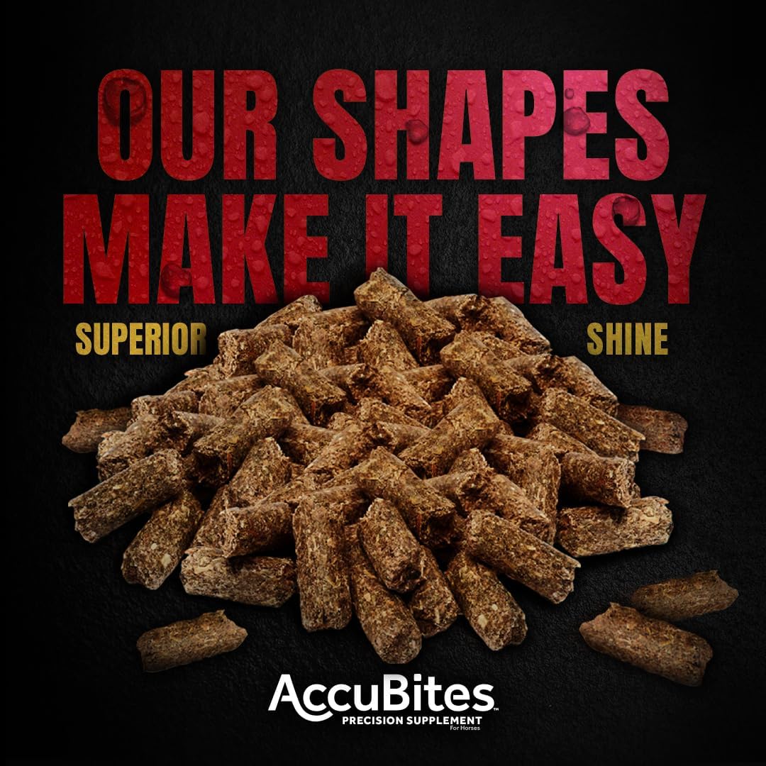 Supplements are only effective if your horse eats them. Introducing AccuBites™, a new line of supplement blends that take the guesswork out of supplementation. Each formula is designed for palatability and has a unique shape and color that stands out when top-dressed on feed, so you can immediately confirm your horse’s intake. AccuBites™ Radiance includes a convenient, carefully balanced combination of ingredients to support skin, coat, and hoof health and keep manes and tails thick and shiny. Finally, a supplement you can see AND believe!