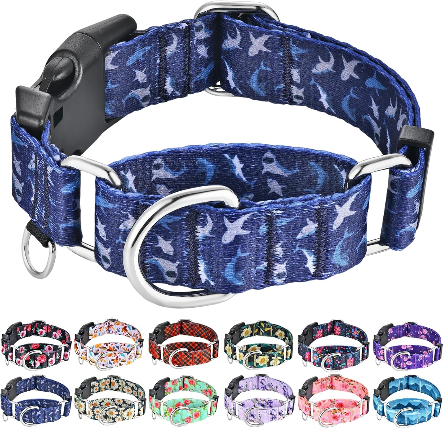 About this item 【Size】Please measure your dog's neck girth and refer to our size chart to choose the size before placing an order. Leave 2 fingers space between the collar and dog neck, not too loose or too tight, to give your dog a comfortable space 【Nylon Martingale Collar】Escape proof dog collar with its unique design will not fall off easily when the dog pulls it, material is comfortable, soft and safe, is an alternative to the traditional choke collar, also an effective training aid collar 【Quick Release Dog Collar】The dog collar with buckle is safe and convenient, allowing pets to quickly release and detach from the collar in emergency situations. Adjustable dog collar are also suitable for pets of different sizes and growth stages 【Designer Dog Collar】Provide you with a variety of choices, with different patterns to meet the personalized needs of pet owners for martingale dog collar functionality and appearance decoration. Suitable for walking, working, and training 【Service】If the anti pull dog collar is damaged during transportation, please contact customer service promptly for assistance. The no slip dog collar cleaning is recommended to wash it with detergent and warm water and air dry it in a cool place › See more product details