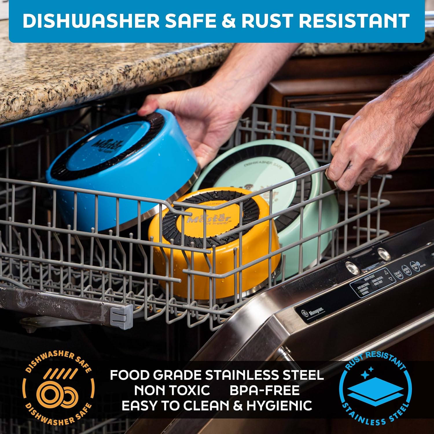 About this item Stainless Steel Dog Water Bowls: Premium extra-thick dog bowl stainless steel with non slip base. Rust-resistant and dishwasher safe for easy cleaning. Maintains water coldness longer than plastic alternatives. Stay Cold Dog Food Bowl: 16 Cup (128 oz) capacity water bowl for dogs, cats and pets. Metal dog water bowl in small, medium, large and x-large sizes & 16 vibrant colors. Non-Slip Dog Bowls: Heavy weighted dog bowl with thick rubber non-slip ring base prevents sliding and tipping. Reduces spills and messes. Ideal for active pets and all dog breeds. Outdoor Dog Water Bowl: Insulated non toxic, BPA-free, pet safe materials. Easy to clean stainless steel surface. Dishwasher safe pet bowl. Helps maintain colder water. Basic Dog Bowls: Indoor and outdoor metal dog bowls. Suitable for all pets. Works great as food bowl or water dish. Stylish colors complement any home décor. Makes a great gift. › See more product details