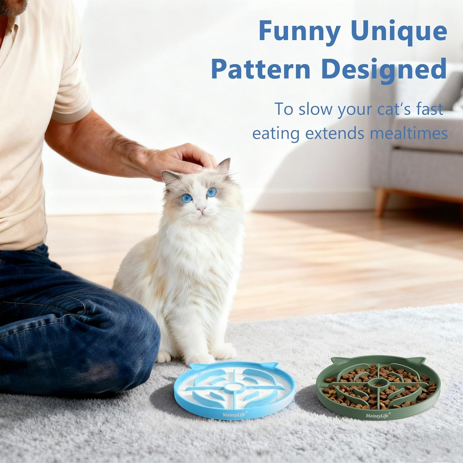 About this item Unique Target Design for Slower Eating: MateeyLife cat slow feeder bowl features a unique target-shaped design with raised ridges that gradually slope from higher outer edges to a lower center. This slow feed cat bowl naturally encourages slower eating by creating an engaging feeding challenge. The silicone bowls for cats encourage natural foraging instincts and prevent gulping. The cute cat bowls for indoor cats are an ideal solution for cats that eat too quickly Promotes Comfortable Eating Pace: This cat bowl slow feeder supports your cat's well-being by encouraging a slower eating habit. Cat food bowl slow feeder helps reduce common issues like vomiting, choking, or bloating after meals. This puzzle feeder cat is designed to support digestion and help with weight maintenance. Slow eating cat bowl makes mealtime last longer, providing mental stimulation and reducing anxiety. Cat food dish is a simple tool for promoting a happier lifestyle for your pet Made from High-Quality Silicone: The cat slow feeders are crafted from premium, food-grade silicone that is safe for your pet. This slow feeder cat is thickened for enhanced durability and long-lasting use, resisting tears and damage. The cat wet food slow feeder is heat-resistant, suitable for both dry and wet food without retaining odors. The cat feeding bowl is made of anti slip silicone for safe, steady meals. The kitten slow feeder offers a good feeding solution for everyday use Versatile Use: The slow cat feeder is designed to be versatile, from coarse grains to wet food to fresh ingredients. This cat food slow feeder has a practical diameter of 16cm (6.3 in) and a low profile of 1.6cm (0.63 in). Silicone cat bowl is an ideal size for most cats. Simply put the food into slow feeding cat bowls and place it on a flat smooth ground, feeding mat. Our cat food puzzle helps with portion control for effective weight management, a solution for your cat's daily feeding needs Easy to Clean: The slow feeder for cats has a smooth, non-porous surface that prevents food from sticking. This slow feeder cat bowl wet food is incredibly easy to clean by hand with just soap and water. The silicone slow feeder is also dishwasher safe for ultimate cleaning convenience. This cat bowls to slow down eating to ensure a hygienic feeding surface for every meal. The slow cat feeder bowl simplifies your routine, making pet care effortless and efficient › See more product details