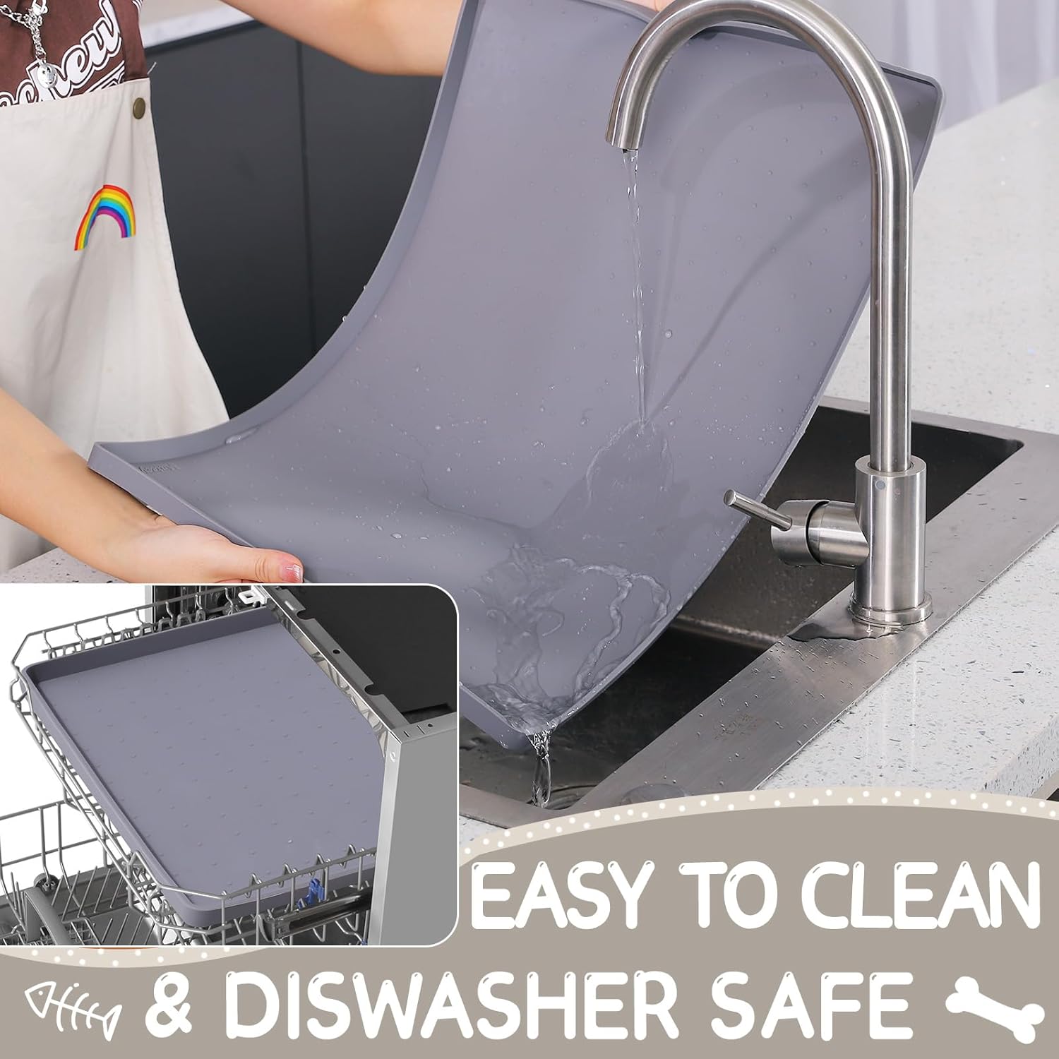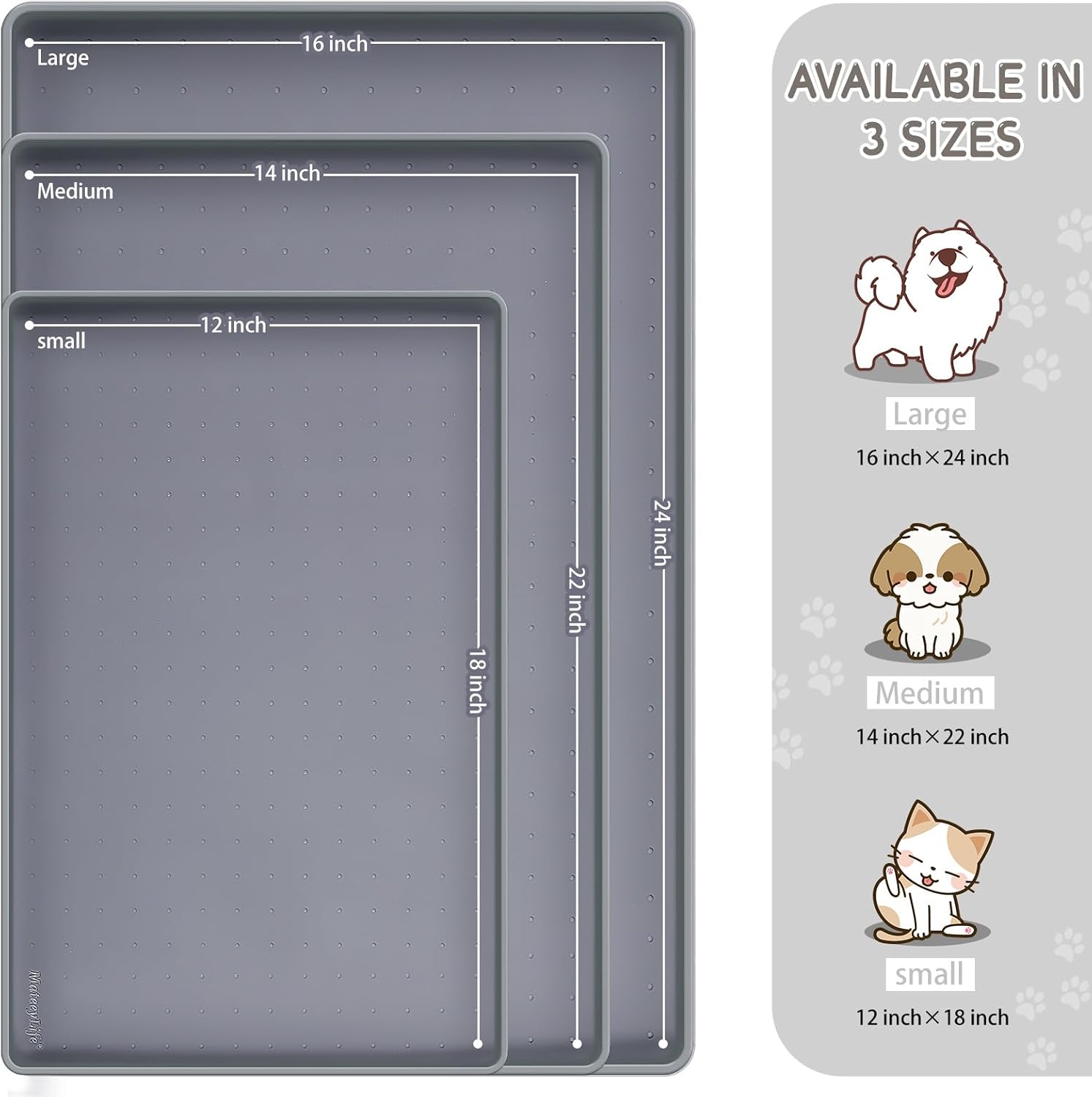 About this item Safe & Less Mess: Our dog water mat and small pet food mats for floor are made of 100% premium food-grade silicone and are safe for pets. The large silicone mat for dog bowls can be easily rolled up and conveniently carried, which is great for travel. This durable silicone dog food mat for floors waterproof is designed to prevent spills from reaching your floors and causing potential damage. Your puppy will have a more enjoyable mealtime experience with these cat food mats for indoor cats Raised Edge Design: The food mat for cat bowls, dog bowl mats for food and water and boot tray measure 18" x 12" with a 0.5-inch raised edge that helps to keep all the mess contained on the small rubber mat for dog bowls. As a barrier, the waterproof dog mat for food and water, pet feeding mats for dog bowls and cat mats for food and water are perfect for pets who eat with enthusiasm or like to play with their food, effectively preventing pets from eating food that has been soiled by the floor Anti-Slip & 100% Waterproof: Featured a non-spill silicone surface with raised dots, the dog eating mat and silicone dog mats for food and water bowls are helpful for keeping your pet's bowl in place to allow your furry companion to dine in peace. Our dog water bowl mat for messy drinkers and dog feeding mats for food and water are constructed from 100% waterproof silicone so that water or messy food can be contained to the topside of dog placemats for food and water and far away from your floor Easy to Clean & Dishwasher Safe: You can fold the pet bowl mats for food and water to discard crumbs and rinse them down in a sink without deformation. Alternatively, the dog water matt for sloppy drinkers and dog matt for food and water bowl can be wiped down with a wet cloth. The pet water mat for dog bowl is also safe to clean in a dishwasher. If you have energetic pets, you can put the silicone pet food mats waterproof with edge under the pet food bowls every mealtime as they dry up quickly Multiple Sizes & After-Sales: Service Our cat feeding mat and dog dish mats for floors waterproof come in 3 sizes and 8 colors, making them ideal for pets of all sizes. The dog food trays for floors can also be used as a rubber shoe mat tray, under sink mat, under sink tray, cat litter mat and litter box mat. If you have a chewer, please supervise him/her while using the cat bowl mat and dog bowl mat waterproof. Any issues, please feel free to contact us › See more product details