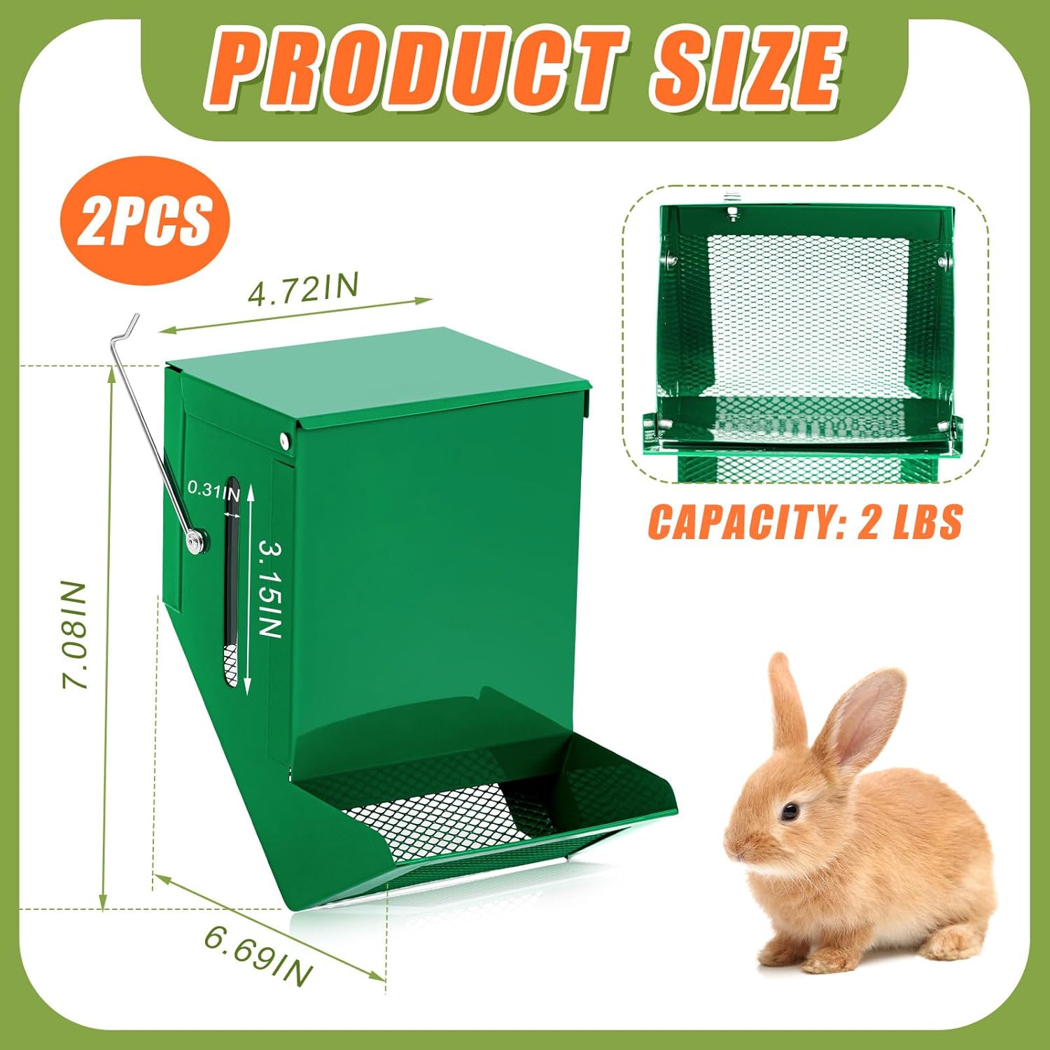 - Included Components: 2 x Rabbit feeder