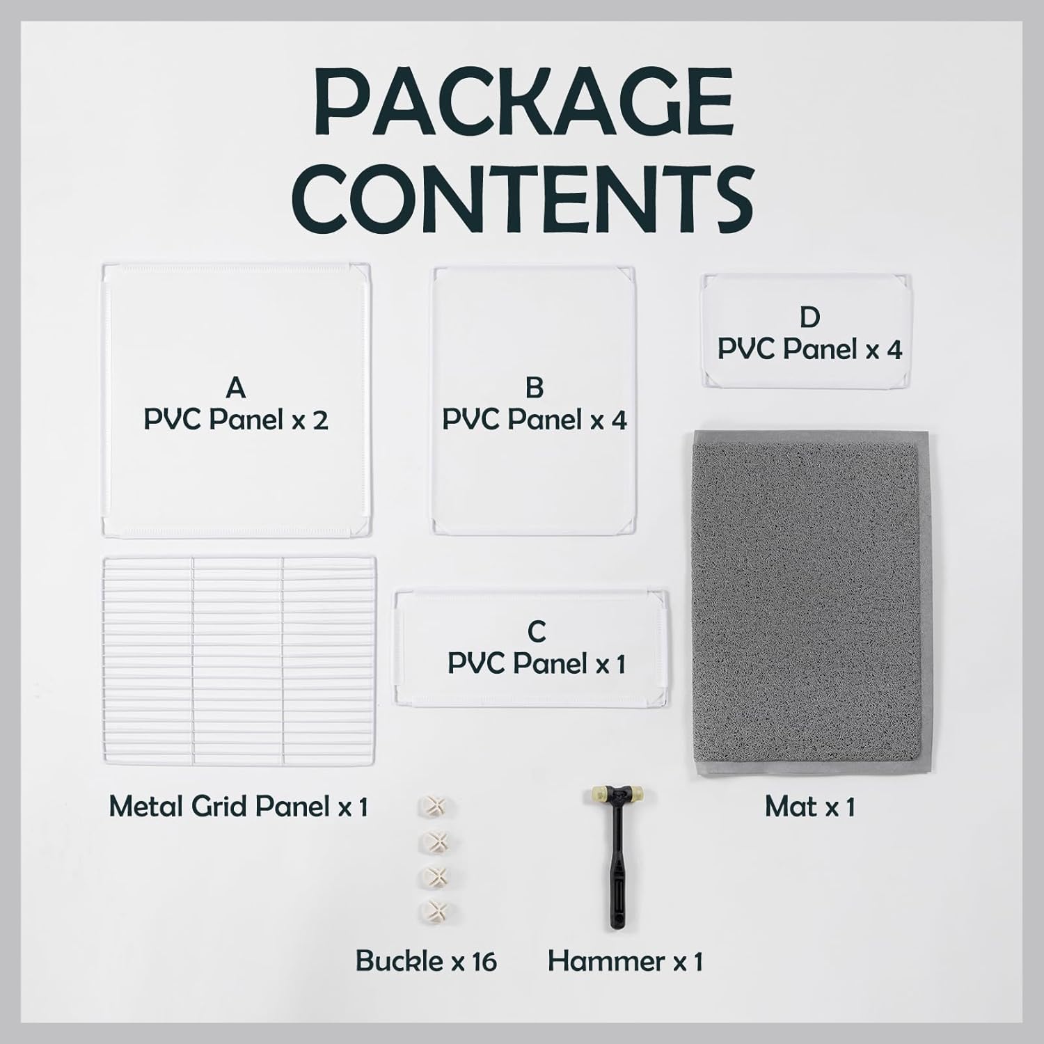 About this item This top-entry design features an anti-tracking metal grate. The grate filters litter off your cat's paws, dropping granules back into the tray. Significantly reduces floor mess, making cleanup faster and easier. Our 360°cat litter box enclosure hides unsightly trays, acting as a discreet privacy screen. It fits most standard litter boxes up to 23.6"L x 15.7"W x 15"H. The tall, fully enclosed structure serves as an excellent litter box shield for high sprayers. The top-entry design keeps curious dogs from accessing the litter. Ensures a safe, private potty space for your cat. Built from durable, waterproof plastic panels, spills wipe clean in seconds. The unit includes a bonus cat litter mat to trap spills and aid in maintenance. Enjoy a hygienic home with minimal effort. Setup is simple and fast, requiring only the included small hammer and clear instructions. The frame is sturdy yet easily disassembled for flat storage when not in use. Check the product page for the quick installation video. › See more product details