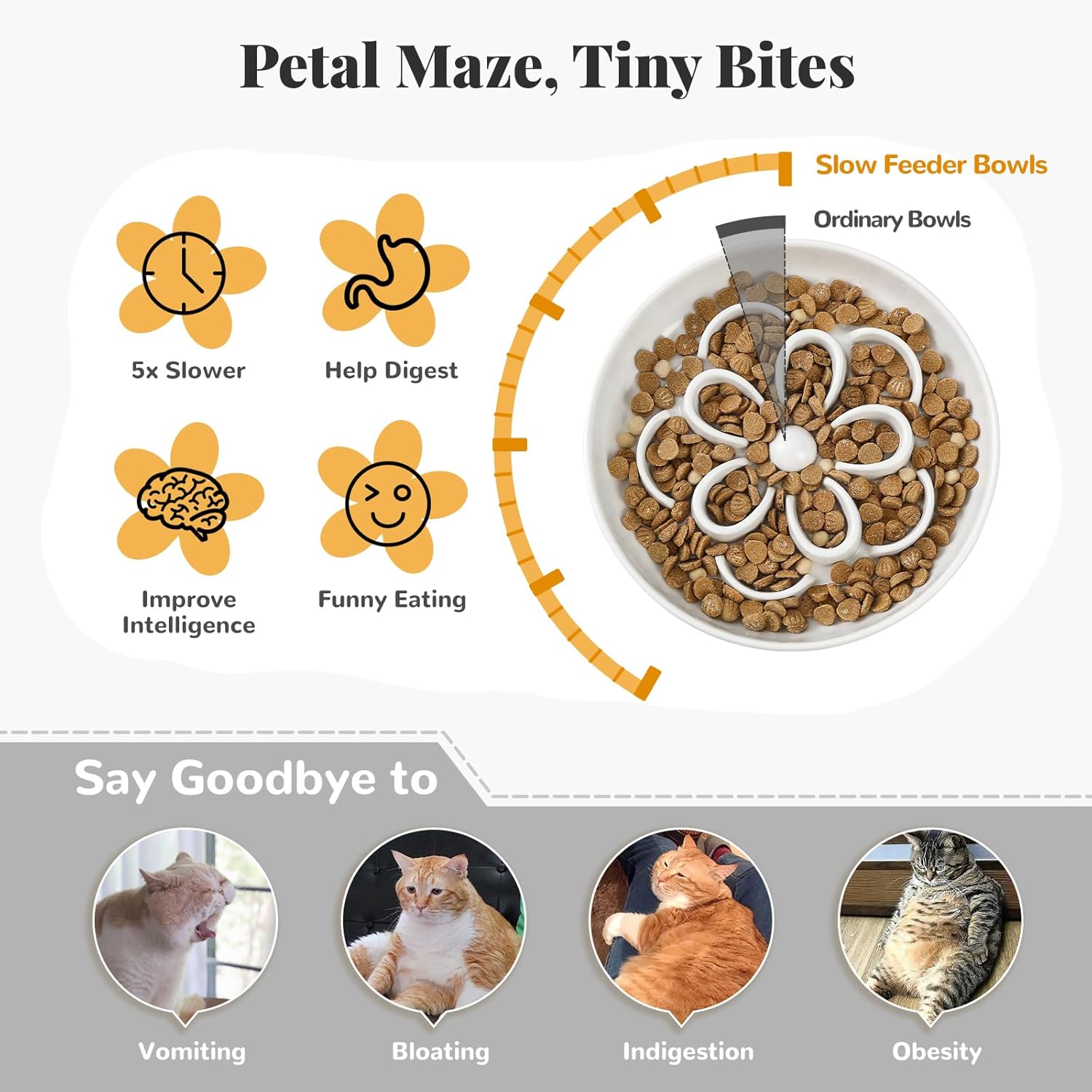 About this item Promote Healthier Habits - This slow feeder cat bowl features a floral maze that slows down eating, helping prevent bloating, vomiting, and fast gulping. A great way to build mindful eating routines from the start. A Pastel Touch That Soothes - This cat food bowl is colored in soft, low-saturation pastels that bring a calm, cozy mood to both your home and your pet’s daily dining. Safe Design with Gentle Details - Crafted from food-grade melamine, the slow feed cat bowl is non-toxic, smooth, and gentle on your cat’s nose, tongue, and mouth. Spacious & Comfortable - Perfect for kittens and small dogs (≤5 kg). The 6.3" wide bowl gives pets plenty of room to eat without whisker stress. Includes anti-slip stickers to keep it steady during meals. Easy to Clean, Fits Any Meal Type - Whether serving dry, wet, canned, raw food, or snacks, these melamine cat feeding bowls handle it all - and they’re dishwasher safe for effortless cleanup. › See more product details