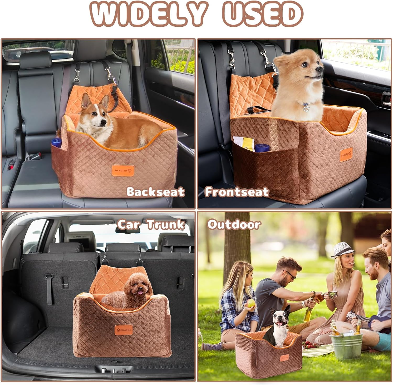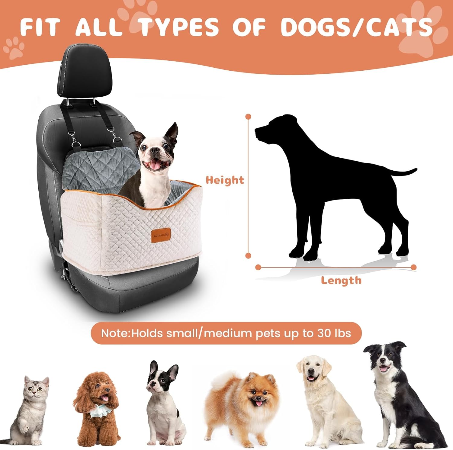 About this item DOG BOOSTER SEAT,EASE ANXIETY, ENJOY TRAVEL: Elevated dog car seat design raise pets up for a better view out the window, help ease dog’s anxiety. Adjustable leash with Snap Hook could attache to your dog’s harness that ensured your dog couldn’t jump out of the car window. Dog car booster seat offers your little doggy to stay comfortable and secure without disturbing you when you driving. MEMORY FOAM PET CAR SEAT: Egg create foam dog car seats is breathable and can quickly rebound, puppy car seat provides the softness and support. Sleeping surface covered with velvet, provides a soft and comfortable sleeping area for dogs. Offers small dogs plenty of room to readjust in the seat. Dog car seats for small dogs, up to 35lbs. COMFORTABLE MATERIAL, SAFE: Fabric is made of velvet, dog car booster seat is soft to touch. Firm foam bolster around the edge keeps dogs in a safe and controlled spot, plus the anti-slip bottom, headrest seat belt auxiliary fixed. Do not worry about the stability of the car dog bed, a distraction-free drive. ADJUSTABLE STRAP DESIGN, EASE TO INSTALL: Pet car booster seat can be easily installed on the front seat or back seat, Suitable for most cars, vehicles, and SUVs. Step: Hang run the Car seat belt through the two holes in the back of the small dog car seat. Put the strap on the car headrest, adjust the suitable length. ANTI-SLIP RUBBER BOTTOM, STORAGE POCKAGE: Non-slip bottom of this dog car bed and safety tethers ensure both your dog and the seat itself won’t be sliding all over your car seat. Two storage pockets on the side of this dog safety seat provide a convenient spot to store doggy Snacks and puppy kibble, amongst other things. MACHINE WASHABLE, CARE INSTRUCTION: Our washable car dog bed with removable cover has zipper closure and can be easily to clean, helping to keep your car clean and fresh. Just get the foam off and it can be machine washed directly. Please note that the inner foam is not washable. After receiving package, leave it for 24h to 48h for rebound. MULTI-FUNCTION DOG CAR SEAT, DOG BED: Lightweight, Portable, Easy to install and detachable: You can use it in your car as dog Car Booster Travel Bed, use it at home as dog bed,use it outside as Camping dog bed. › See more product details