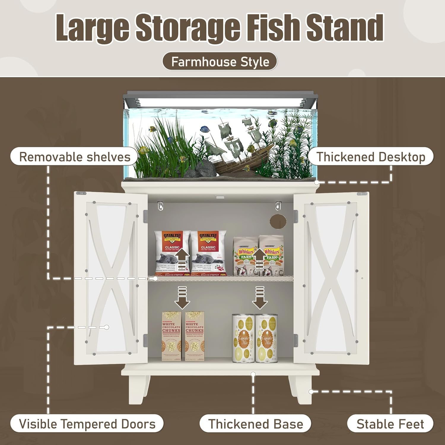 - Model Name: Merax 20 Gallon Fish Tank Stand with Power Outlets(4 AC 2 USB), Farmhouse Decorative Aquarium Stand Furniture with Adjustable Shelves and Cabinet Storage, Beige
