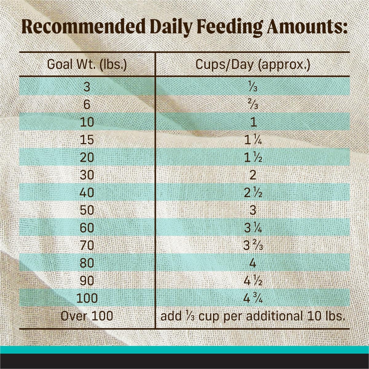 - Directions: Using the chart on the back of the product, divide the total cups per day by the total number of times you feed your dog per day to determine the portion size for each meal. Keep a clean bowl of fresh water available at all times. Every dog is a little different, so optimal feeding amounts may vary with age, size and activity level. Please use the information below as an initial recommendation only and adjust when needed. Dry and wet food in combination will help to increase the level of water in your dog's diet. If feeding with wet food, reduce dry amount by 1/2 cup for every 6 oz. of wet food.