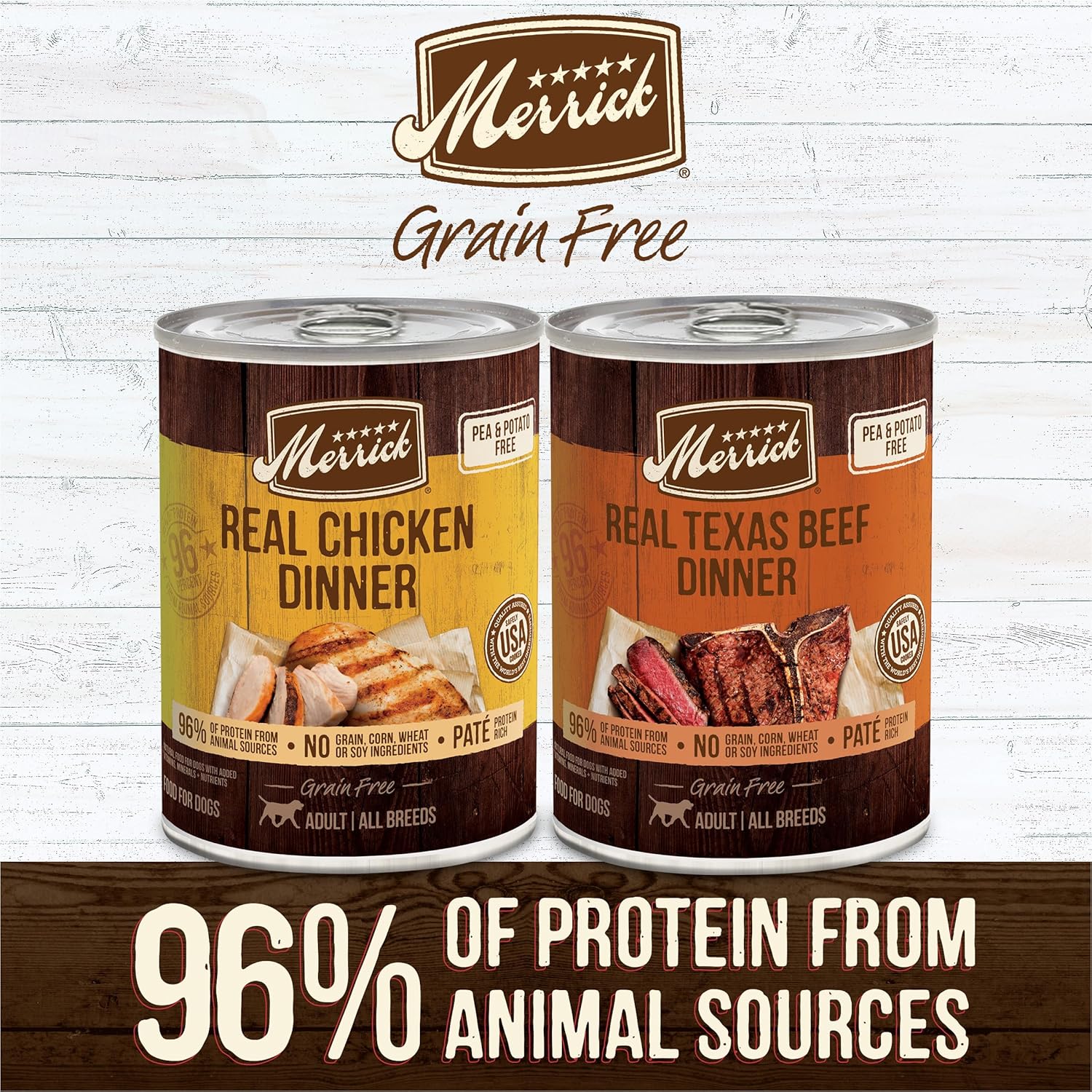 - Included Components: Twelve (12) 12.7 oz Cans - Merrick Grain Free Wet Dog Food Variety Pack, Real Texas Beef and Chicken Dinner, Canned Dog Food