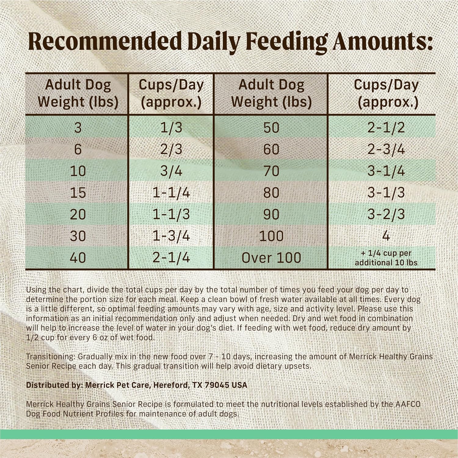 - Included Components: One (1) 25 lb Bag - Merrick Healthy Grains Dry Dog Food Senior Recipe