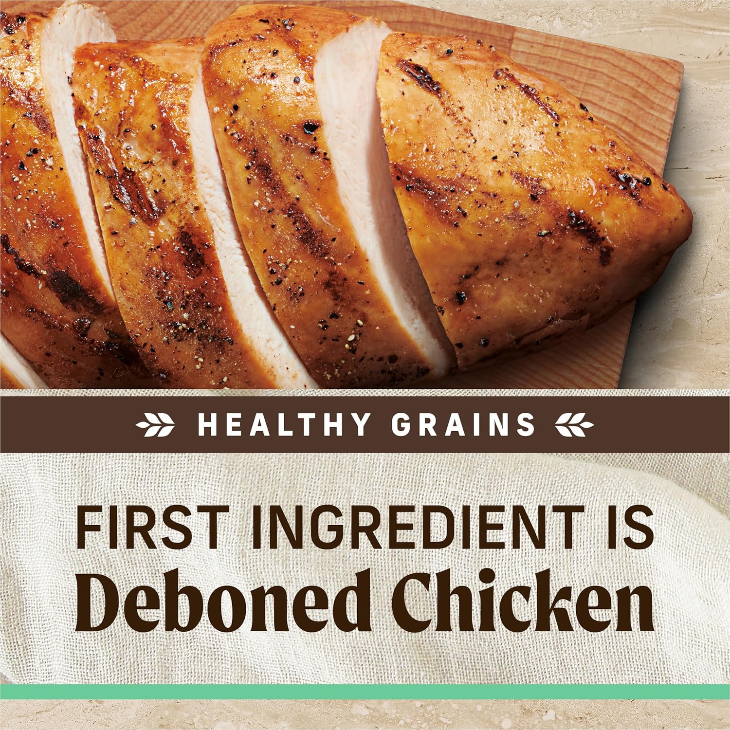 Offer your dog a healthy meal made with nutrient-rich ingredients with Merrick Healthy Grains Senior Dry Dog Food. Real deboned chicken is the number one ingredient in this wholesome high protein dog food for senior dogs that helps maintain lean muscle mass and healthy energy levels. This premium kibble for senior dogs contains a holistic blend of whole grains, like oats that are easily digestible to create a natural, with added vitamins, minerals, and nutrients, senior dog food. Additionally, this chicken dog food contains Omega-6 and Omega-3 fatty acids to support healthy skin and coat. It also contains high levels of glucosamine and chondroitin to help support your senior dog’s healthy hips and joints. Senior wholesome dog food with healthy grains is made without peas, potatoes, corn, lentils, or soy to ensure a premium potato free dog food option. Merrick senior dog food recipes are proudly founded in Hereford, Texas, crafted in USA facilities.