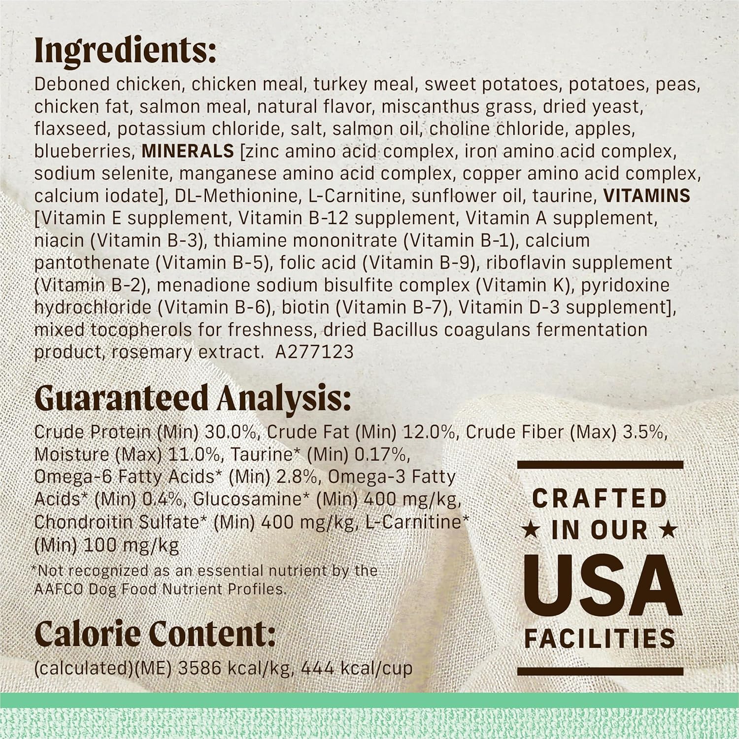 - Specific Uses for Product: Natural Grain Free Dental Weight Control Hip & Joint Support Real Meat Digestive Health High-Protein Skin & Coat Gluten Free Corn Free Wheat Free Soy Free Easily Digestible Muscle Support Vitamins & Minerals Maintenance No Artificial Colors No Artificial Flavors No Artificial Preservatives