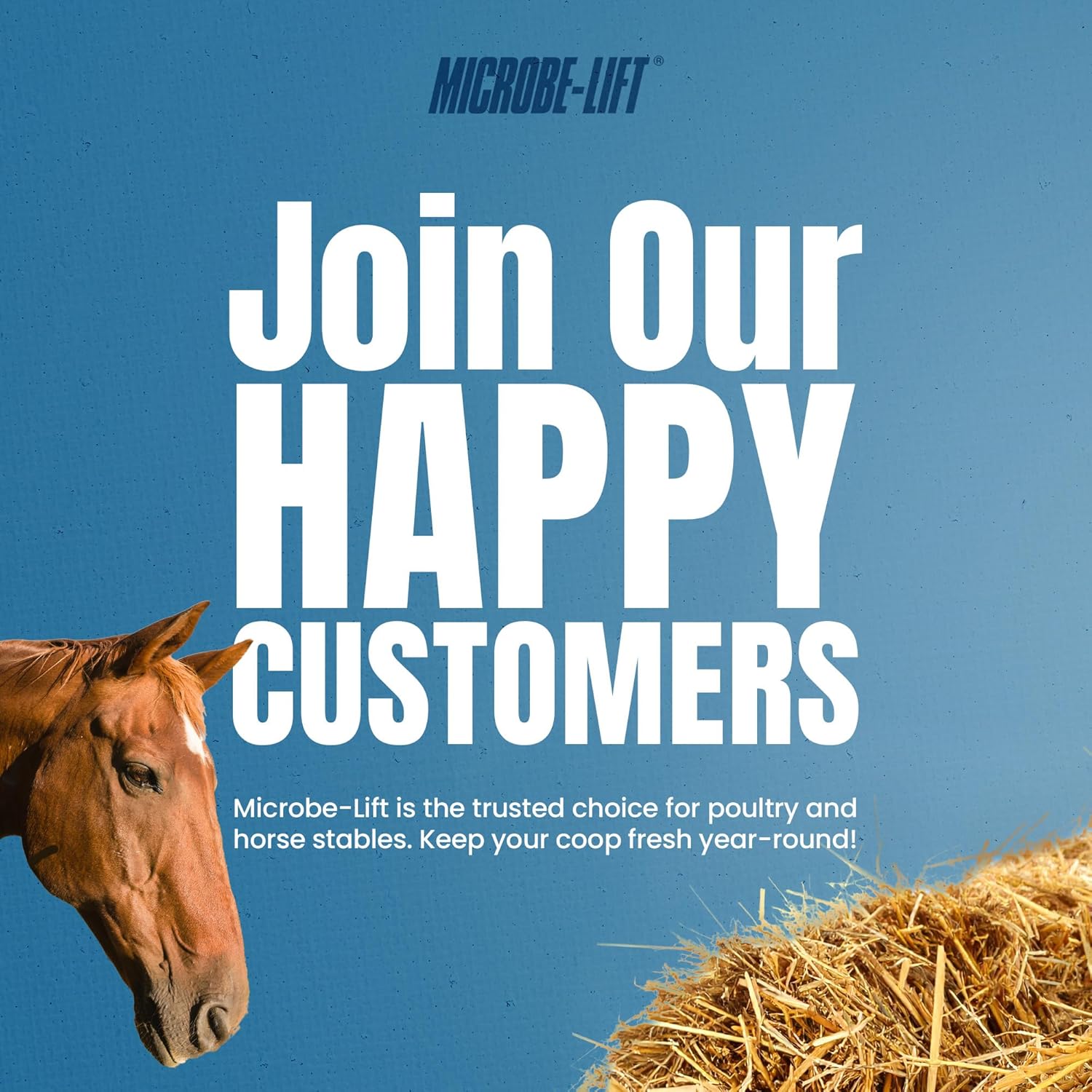 Microbe-Lift Horse Stall Cleaner & Deodorizer is a concentrated solution designed to help maintain fresh, clean conditions in barns, stalls, and stables. Formulated for equine environments, it works on all surfaces including walls, floors, and equipment. This 100% natural formula is safe to use around horses, even while they are present, and will not affect feed or water. It’s ideal for reducing unpleasant smells in moist environments by addressing the organic sources of odor. Easy to apply—just shake well, dilute as instructed, and spray directly on the area. No rinsing required. Regular use helps support cleaner surroundings and better comfort for animals. With a fresh, clean scent and trusted by caretakers and veterinarians across the U.S., this product is a go-to for responsible equine maintenance. Use every 1–3 weeks as needed to maintain effectiveness and support daily barn care routines.