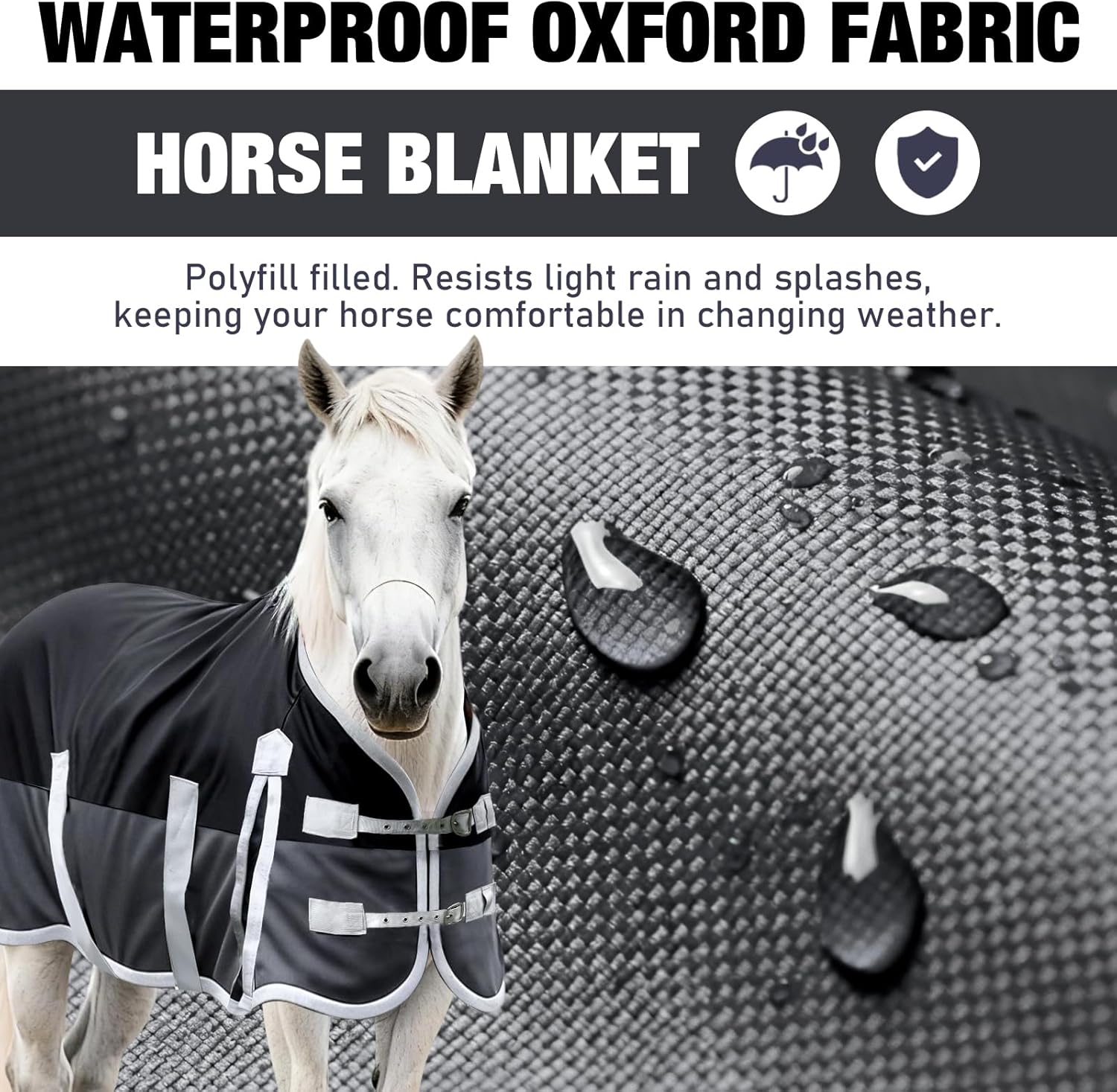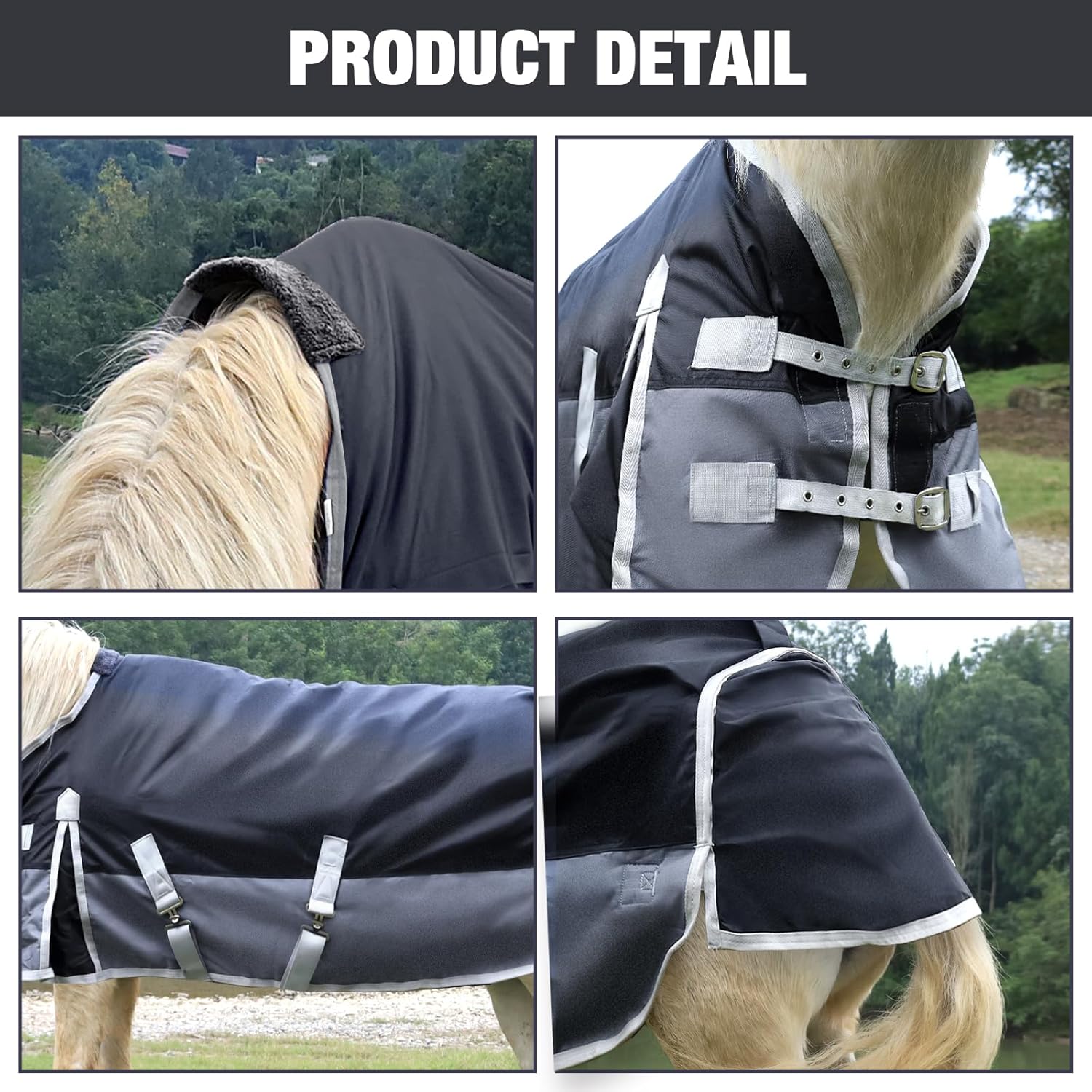 About this item Vortexain is dedicated to providing high-quality horse blankets for horse owners, ranches, and equestrian enthusiasts. We combine innovative design with practical functionality, selecting durable fabrics and comfortable filling. Each blanket is carefully crafted to ensure durability, performance, and comfort, offering thoughtful protection for your horse in all weather conditions. 【High-Quality Materials】The outer layer is made of durable 1600D polyester fabric that is waterproof, breathable, and tear-resistant. The polyester lining is filled with 250g of premium cotton and features an adjustable belly strap, adjustable leg straps, providing full-body adjustability and complete coverage for your horse. Shoulder gussets and hind coverage ensure freedom of movement without restriction. 【About the Outer Fabric】The outer layer is crafted from 1600D ripstop polyester, known for its toughness, abrasion resistance, and excellent tear-resistance. The fabric is strong, maintains its shape, and offers a degree of water resistance, keeping your horse dry in damp outdoor conditions. NOTE: Please note that horse blankets are designed to balance warmth and breathability, so they are not fully waterproof like raincoats. They provide good protection in light rain or damp weather, but in heavy or prolonged rain, moisture may eventually seep through. We recommend taking extra care in severe weather to keep your horse comfortable and healthy. 【About the Lining】 The lining is made of polyester filled with 250g of premium cotton. This fabric is lightweight, soft, and comfortable against the skin, reducing friction without adding extra weight for your horse. It is stain-resistant, easy to clean, and quick-drying, helping keep your horse dry. Suitable for winter temperatures from 23°F to 50°F (-5°C to 10°C). 【Thoughtful Gift】 Looking for the perfect gift for a horse enthusiast? This horse blanket is practical and thoughtful, showing your appreciation for their passion. Perfect for anniversaries, holidays, or any special occasion. The Vortexain winter horse blanket is durable and built to last. 【Worry-Free】 At Vortexain, customer satisfaction is our top priority. We are committed to providing the highest quality service to meet the needs of all our customers. Our strict return and refund policy ensures you can order with confidence. If you encounter any issues with your purchase, please contact us, and we will provide a 100% satisfactory solution. › See more product details
