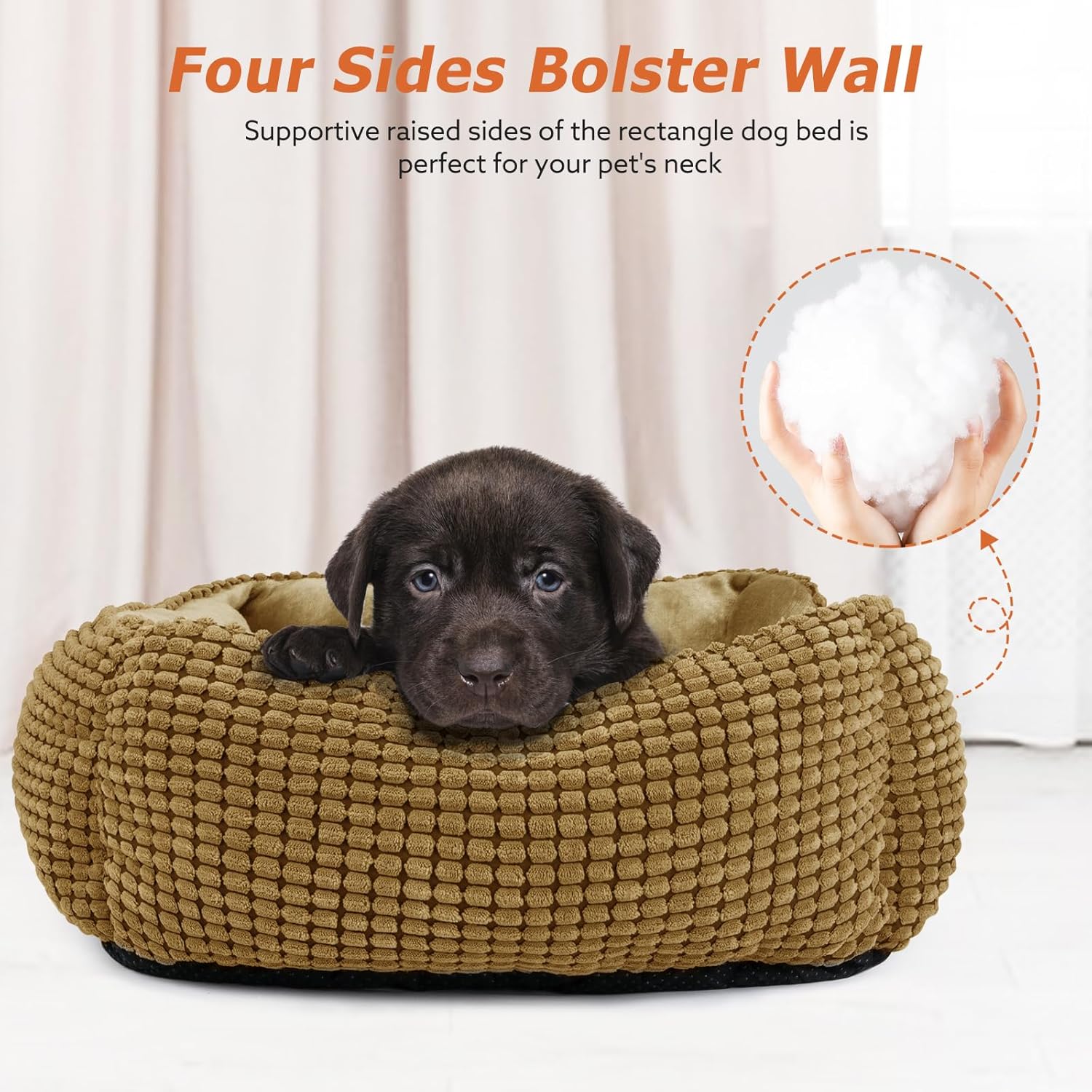 About this item Comfort & Security Edge: Raised four walls and pillow-like rectangular dog bed provide good support and cushion for the dog's head and neck, the super-soft filling offers joint and muscle pain relief. and allowing your puppy to have a comfortable and restful sleep. Low leading-edge design is easy access for small and old dogs. Pet-Safe Materials: good Flannel material makes it super soft & cozy, and exterior is designed as corn kernel shape, filling with Flannel fabric makes it sturdy for long time use. Perfect for puppy's skin, keeping your pets have a comfortable sleep. Size Details: Small dog bed for Small dogs up to 15lbs, the outer size is 20"x19"x6"; Medium dog bed for Medium dogs up to 30lbs, the outer size is 25"x21"x8"; Large dog bed for Large dogs up to 40lbs, the outer size is 30"x24"x9"; X-Large dog bed for Jumbo dogs up to 60lbs, the outer size is 35"x25"x9"; Please be sure to confirm the size. Washable Dog Bed: Durable pet bed machine washable as a whole. Gentle cycle and thoroughly dried in dryer directly after washing and do not Air dry. Please use your hands to pat, shake the dog bed and wait for 1-2 days to wait it back to fluffy status before using. Anti-Slip Bottom: keep the bed in position and keep your pets safe. The low front edge is easy for cats and small dogs to access. After-Service Support: If you have any issue of our products, please contact us directly and we are eager to rectify it! › See more product details