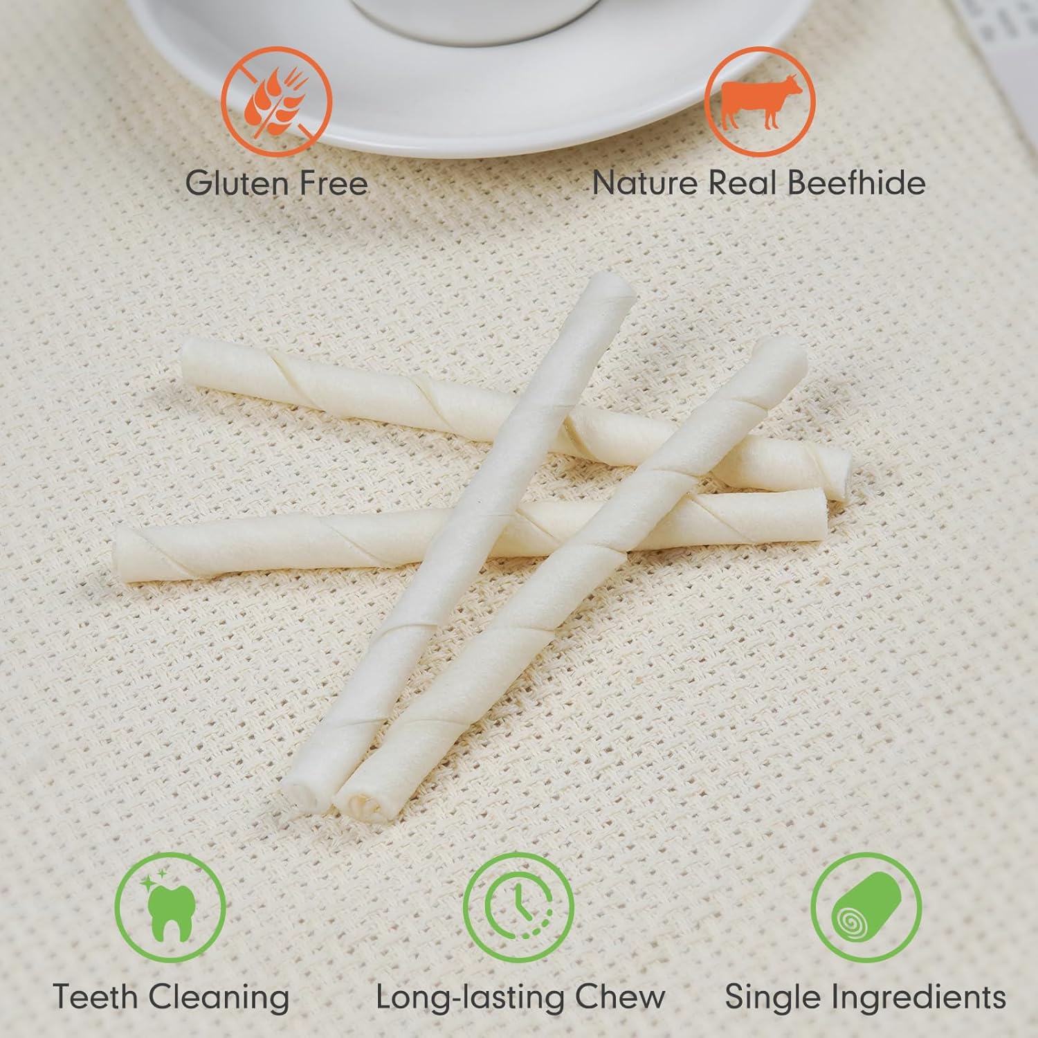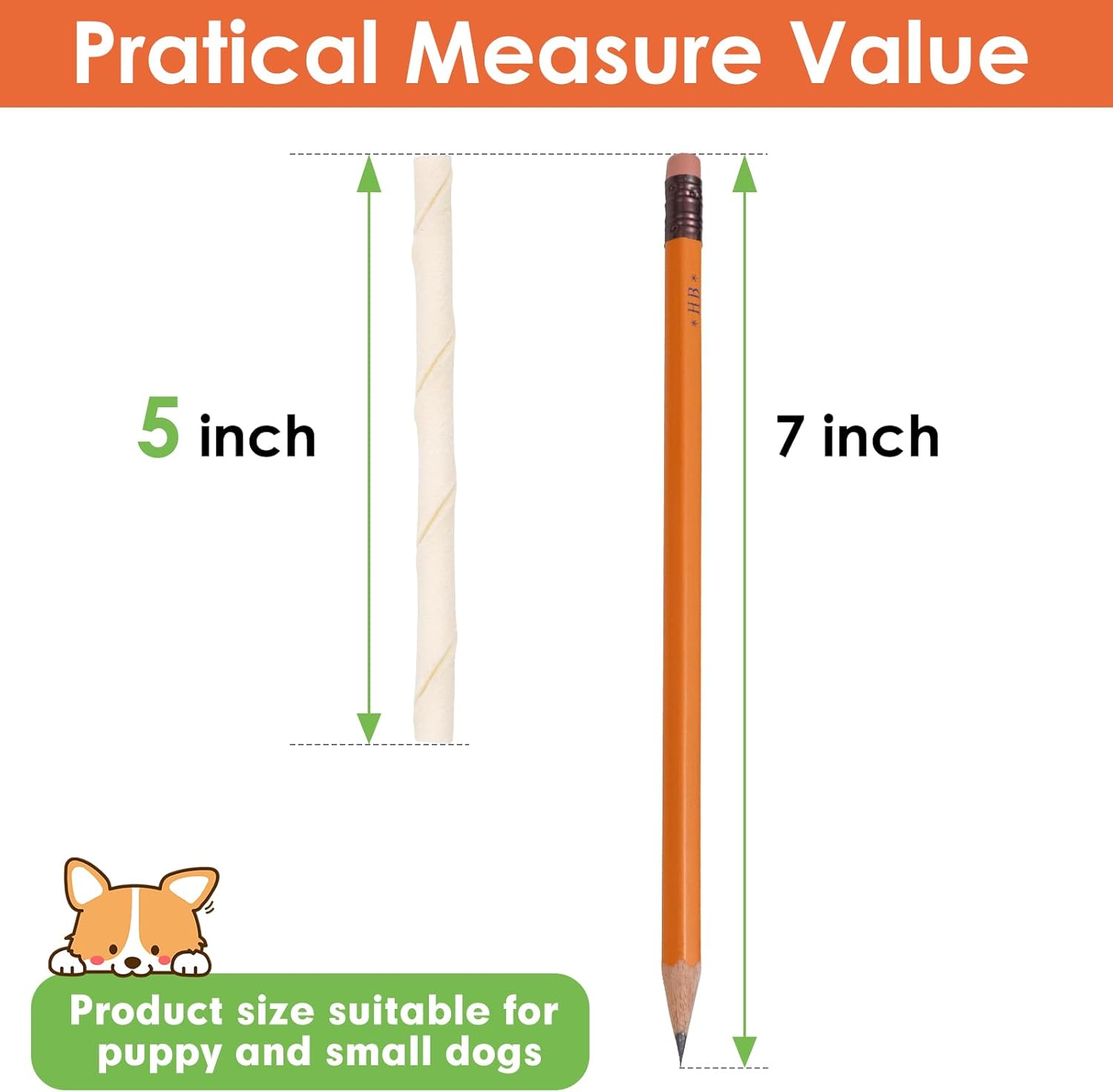 About this item The length of the sticks is 5-inch and7 MM thick. Only for puppy and small dogs. Healthy and delicious rawhide sticks. No artificial colors. Dog rawhide twist sticks can promote dogs' teeth healthy. Have less plaque and tartar. Keeps dogs' jaws strong and breath fresher. Dog rawhide sticks provide fun chewing enjoyments for your dogs, good choice as a small treat. We have 20+ years of expertise in the dog treats industry, stringent quality control. If your dog doesn't like our dog treats, please contact us. We are always ready to help you. › See more product details