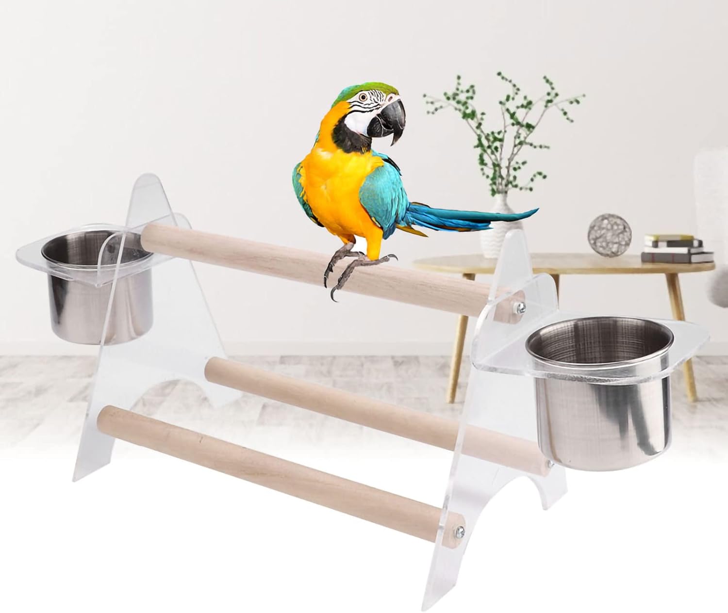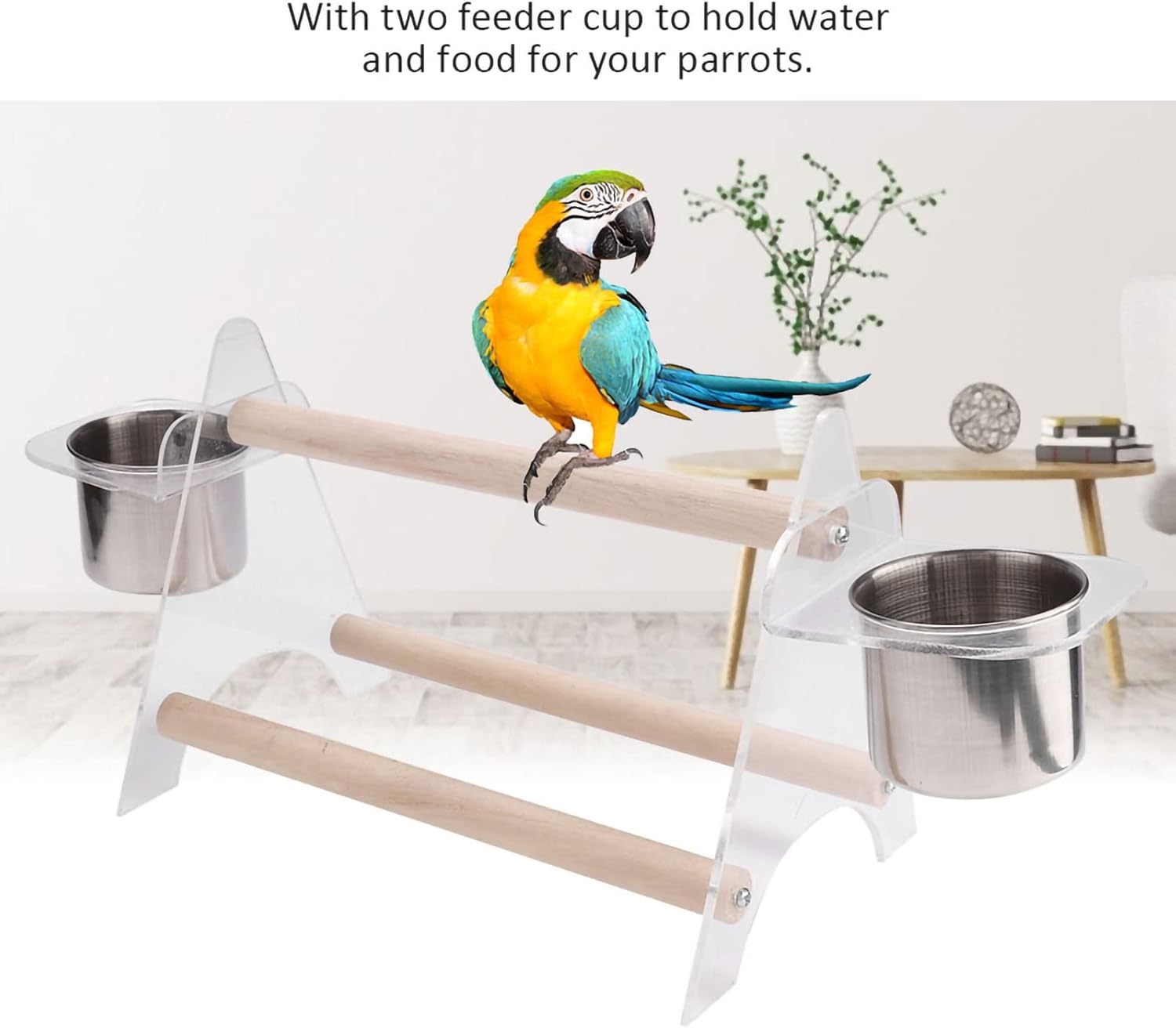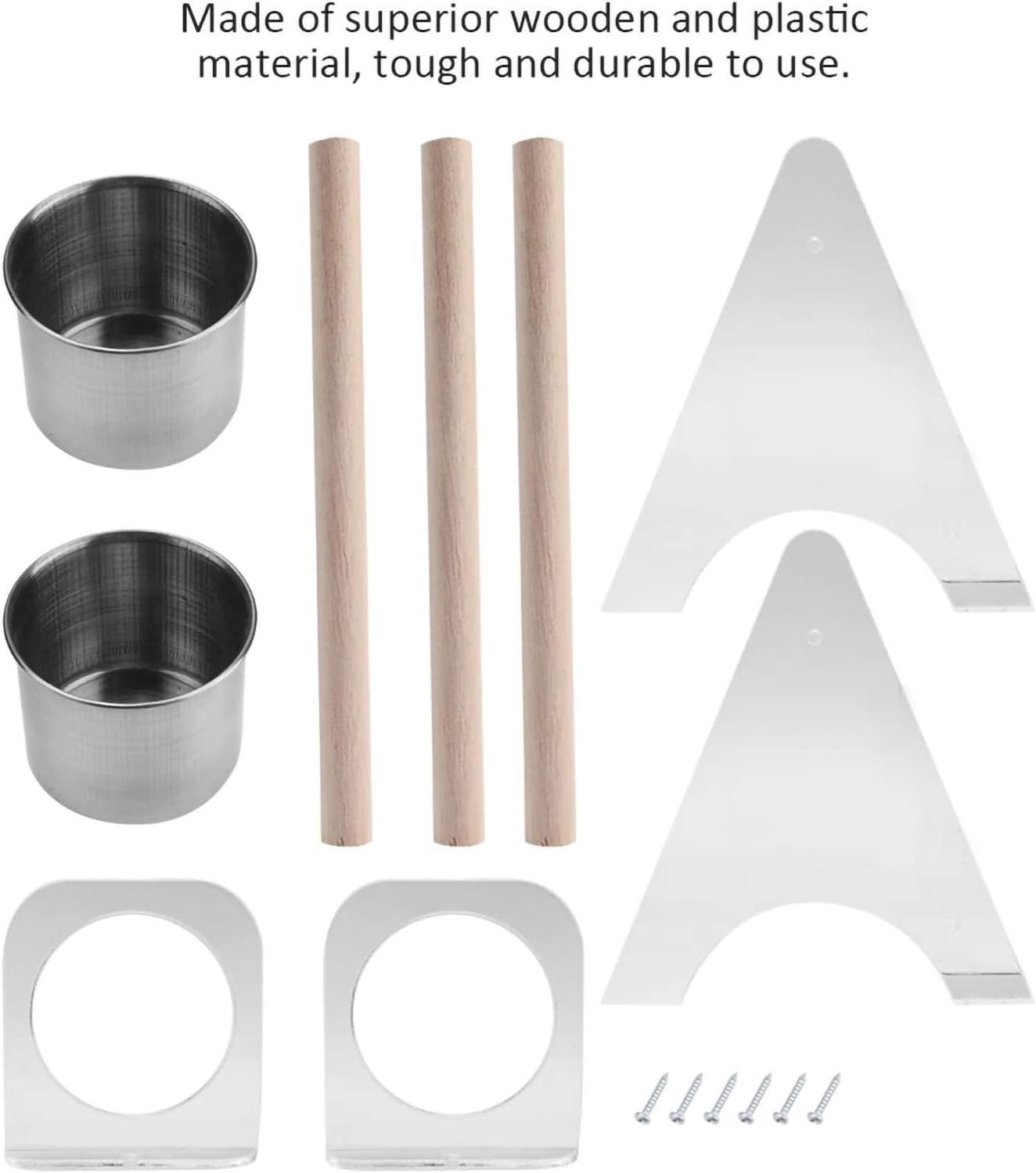 Features:Made of superior wooden and plastic material, tough and durable to use. All finishes are non-, safe and Eco-friendly. All parts are rounded smooth, no burr, avoid hurting your pet parrot. Comes with screws, easy and convenient to install.With two feeder cup to hold water and food for your parrots.Perfect stand for your pet birds to enjoy themselves and do exercise.Specification:Material: Wood + PlasticColor: As pictureSize: 20 x 14cm / 7.87 x 5.51inch(Approx.) Suitable for small and medium sized birdsPackage list:2 x Tripod3 x Wooden stick2 x Cup2 x Cup holder6 x ScrewNotice:Please allow 1-3cm error due to manual measurement and make sure you do not mind before ordering. Please understand that colors may exist chromatic aberration as the different placement of pictures.