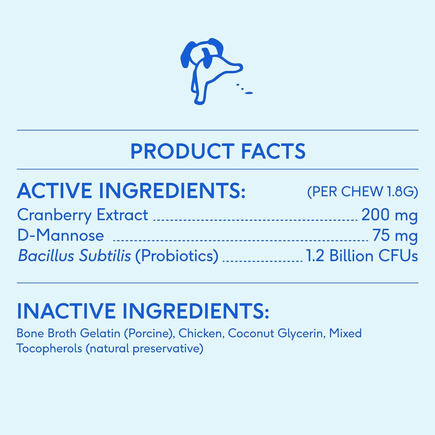 PREVENT UTI AND INCONTINENCE BEFORE THEY START: Prevention is better than cure! Our dog bladder supplement helps prevent urinary tract infections and dog urinary incontinence with powerful ingredients like Cranberry Extract and D-Mannose. This effective urinary tract for dogs support keeps your pup’s bladder healthy and helps prevent issues like UTIs. Give your dog the best in daily protection with a natural, effective solution for dogs' UTI treatment and bladder health. IMMUNE SUPPORT AND OVERALL HEALTH FOR ALL DOGS: Boost your dog’s natural defenses with this nutrient-rich dog multivitamin powder. Packed with Vitamin C, Zinc, and Beta Carotene, it promotes vitality and overall health, making it the perfect choice for immune support for dogs. Designed for all breeds and all ages, this dog vitamin provides essential dog vitamins and supplements to keep your furry friend active and healthy. CONTAINS D-MANNOSE AND PROBIOTICS FOR OPTIMAL BLADDER HEALTH: This dog cranberry supplement are loaded with D-Mannose, probiotics, and cranberry extract—three powerful ingredients that support urinary tract health and bladder control for dogs. These cranberry chews for dogs are minimally processed to preserve maximum nutrients, offering both great flavor and health benefits. Each chew provides reliable bladder support for dogs, helping keep their urinary tract in top shape. VET-DEVELOPED COMPREHENSIVE HEALTH FOR EVERY DOG: Each scoop delivers 11 powerful perks, from mobility & gut health to energy & shiny coat. Developed by board-certified veterinary nutritionists, this formula is packed with 12 active ingredients, including glucosamine, collagen, probiotics, omega-3s, and taurine, ensuring a balanced dog supplements & vitamins. Whether you’re caring for a puppy or senior, this dog multivitamin supports their joint, heart, digestion, and overall vitality. THE NATIVE PET PACT: Our proprietary formulas, always using human-grade whole food ingredients and never using fillers or additives, make our products the best choice for your pet's health & wellness › See more product details