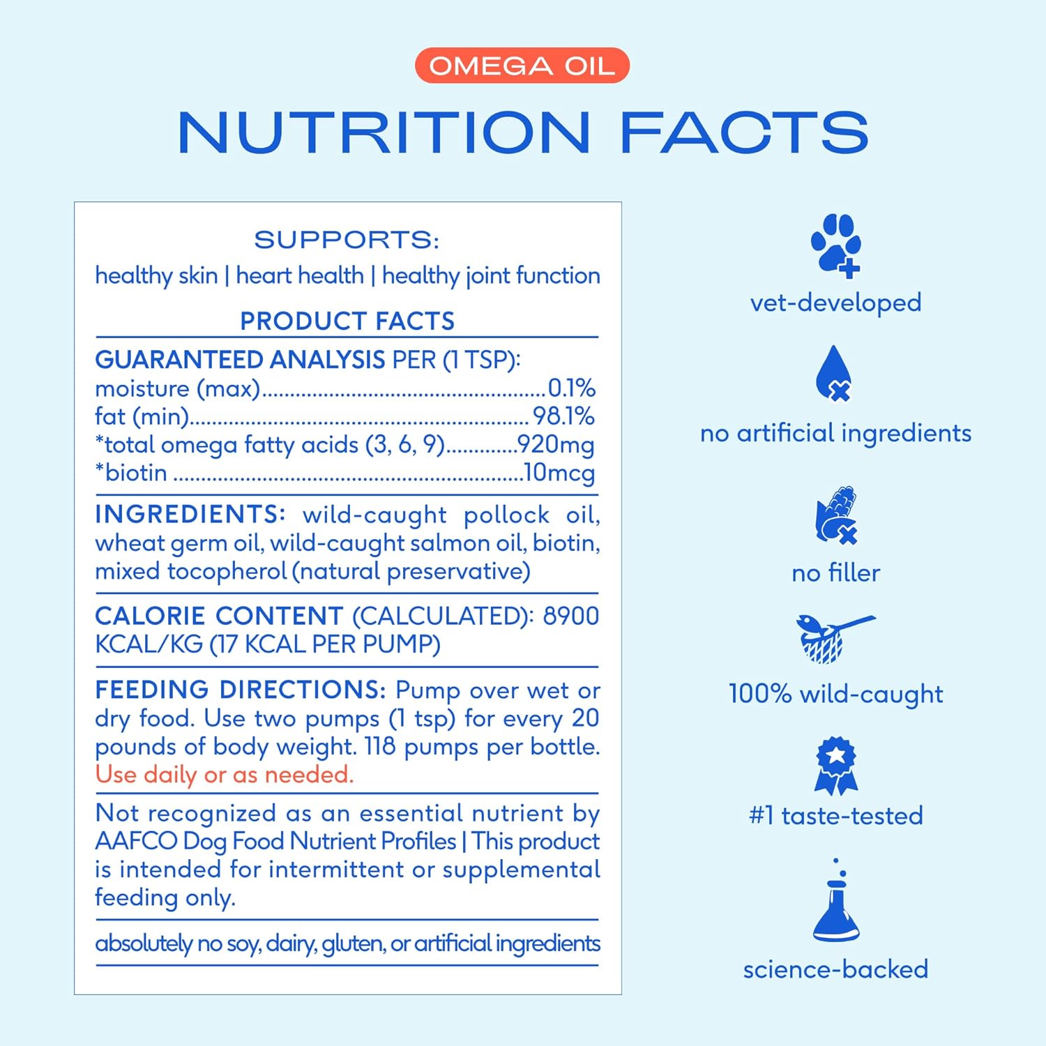 IMMUNE SUPPORT AND OVERALL HEALTH FOR DOGS: Boost your dog’s natural defenses with this nutrient-rich dog multivitamin powder. Packed with Vitamin C, Zinc, and Beta Carotene, it promotes vitality and overall health, making it the perfect choice for immune support for dogs. Designed for all breeds and all ages, this dog vitamin provides essential dog vitamins and supplements to keep your furry friend active and healthy. HEALTHY SKIN, COAT AND JOINTS—ALL IN ONE DELICIOUS PUMP: Native Pet Omega 3 Fish Oil, made from wild Alaskan fish oil, is a high-quality dog fish oil supplements that promotes a shiny coat, healthy skin, and strong joints. With a tasty flavor that dogs love, it makes mealtime more exciting for even the pickiest eaters. Packed with Omega 3 for dogs, it’s perfect for pets with dry skin, dull fur, or joint stiffness. Simply add a couple of squirts to your pet’s food daily for noticeable results! VET-DEVELOPED COMPREHENSIVE HEALTH FOR EVERY DOG: From playful puppies to thriving seniors, this multi vitamin for dogs is designed to promote overall vitality at every stage of life. With four convenient sizes—30, 60, 90, and 120 scoops—it’s easy for every pet parent to find the perfect fit for their dog’s needs. Loaded with 5x the actives of leading soft chews, it’s the ultimate choice for vitamins for dogs, dog powder, and pet vitamins and supplements to ensure lifelong health. ALL-NATURAL, WILD-CAUGHT FISH OIL: Made with wild-caught pollock oil and wild-caught Alaskan salmon oil, this omega oil for dogs ensures the highest quality and sustainability. We use no added fillers—just pure, premium ingredients like wheat germ oil and biotin to support your pet’s health. This potent omega 3 supplement for dogs promotes a shiny coat, healthy skin, strong joints, and reduced inflammation. A dog skin and coat supplement that's gentle on sensitive stomachs for easy digestion. DEVELOPED BY LEADING VET NUTRITIONIST: Our fish oil for cats and dogs promotes healthy skin, a shiny coat, and joint mobility with essential omega fatty acids. This fish oil omega 3 supplements for dogs helps reduce dryness, enhance coat texture, and support heart and joint health. This liquid fish oil for dogs boosts the immune system, reduces inflammation, and improves overall vitality, ensuring your dog feels 100% and thrives in all aspects of health. › See more product details