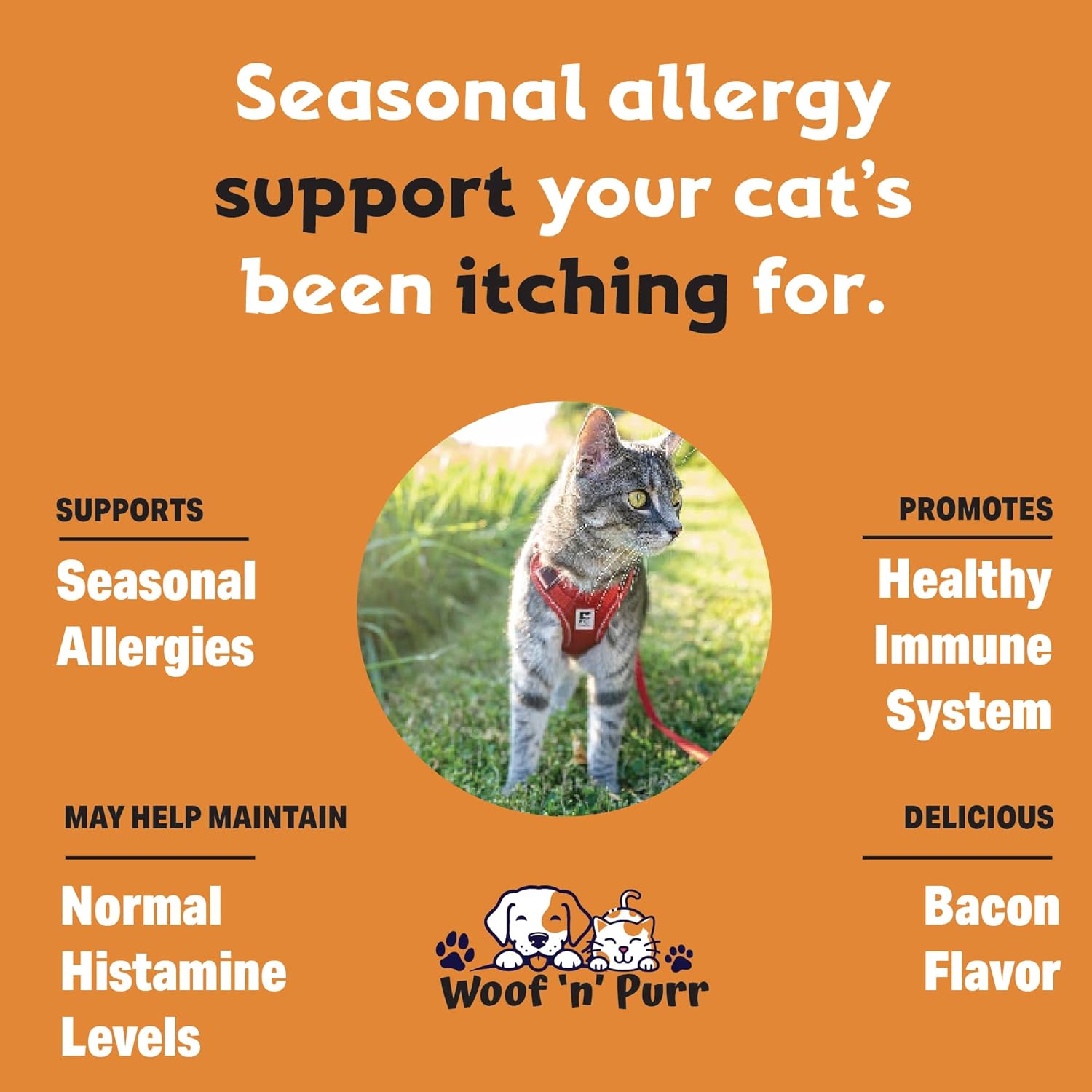 Introducing Woof ’n’ Purr's Allergy Relief tincture for Cats – the natural solution your furry friend has been waiting for! We understand how distressing it can be to see your beloved pet suffer from allergies, causing discomfort, scratching, itching, and so much more. That's why we've crafted a powerful herbal tincture to provide fast-acting relief and help your cat regain their vitality. Nature's Healing Power: Our tincture is a testament to the incredible healing properties found in nature. We've carefully selected a blend of herbs renowned for their anti-itching and soothing properties. These herbs work harmoniously to combat a wide variety of allergies, allowing your cat to enjoy life itch-free. Fast Relief, Happy Paws: When allergies strike, you want a solution that works quickly. Woof ’n’ Purr's herbal tincture is designed to provide rapid relief, easing the itching and discomfort that can make your pet miserable. Say goodbye to those sleepless nights and hello to happy paws! Gentle and Safe: We understand that your cat’s well-being is your top priority. That's why our tincture is formulated with the utmost care, using only natural ingredients. We avoid harsh chemicals and additives, ensuring a gentle yet effective tincture suitable for cats of all sizes and breeds. Happy Tails Guarantee: We're confident in the effectiveness of our Cat Allergy Relief. In fact, we're so sure that you and your cat will love the results that we offer a Happy Tails Guarantee. If you're not completely satisfied, let us know, and we'll make it right.Don't wait – take the first step towards your cat’s well-being today. Order Woof ’n’ Purr's Natural Allergy Relief for Cats tincture and let your furry friend enjoy a life free from itching and discomfort. It's time for a healthier, happier pet with Woof ’n’ Purr by your side!