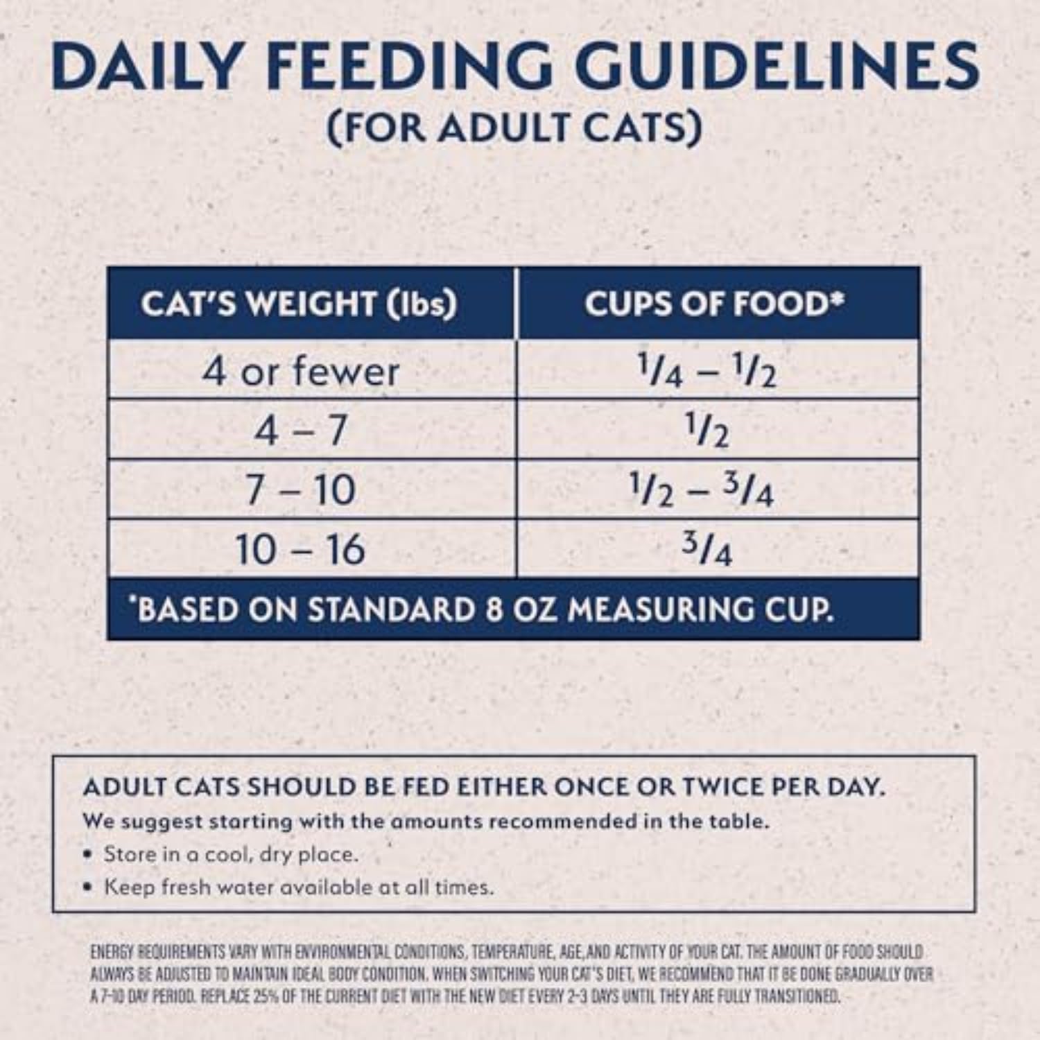 - Directions: Please see product packaging for complete feeding and feeding transition instructions. Talk to your veterinarian about your pet’s ideal weight and adjust your feeding amounts accordingly. Be sure to provide plenty of fresh, clean water daily.