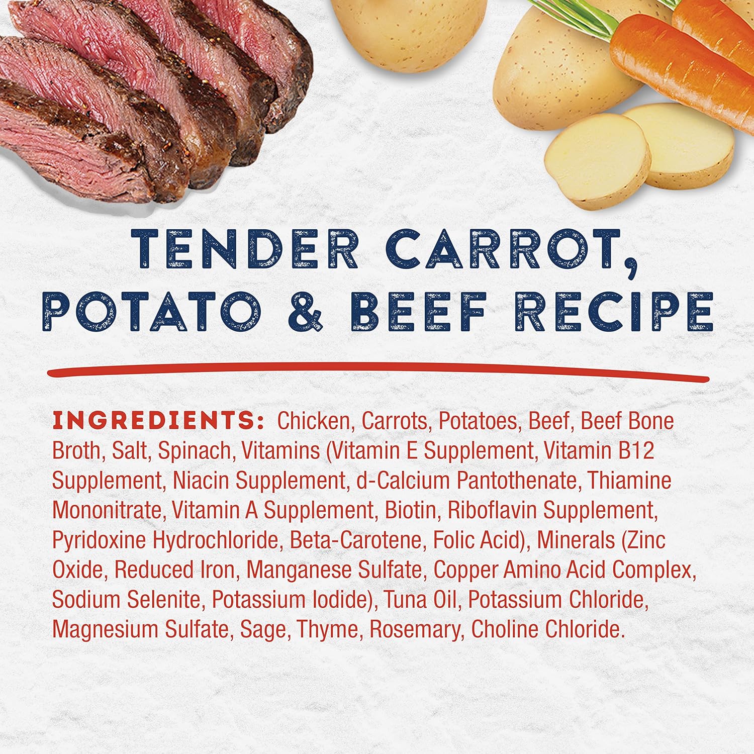 Homemade style food made easy. Perfect for picky eaters. This healthy, irresistible, complete and balanced meal cooked in bone broth is made with beef, carrots, and potato. Ready to serve as either a meal or topper.