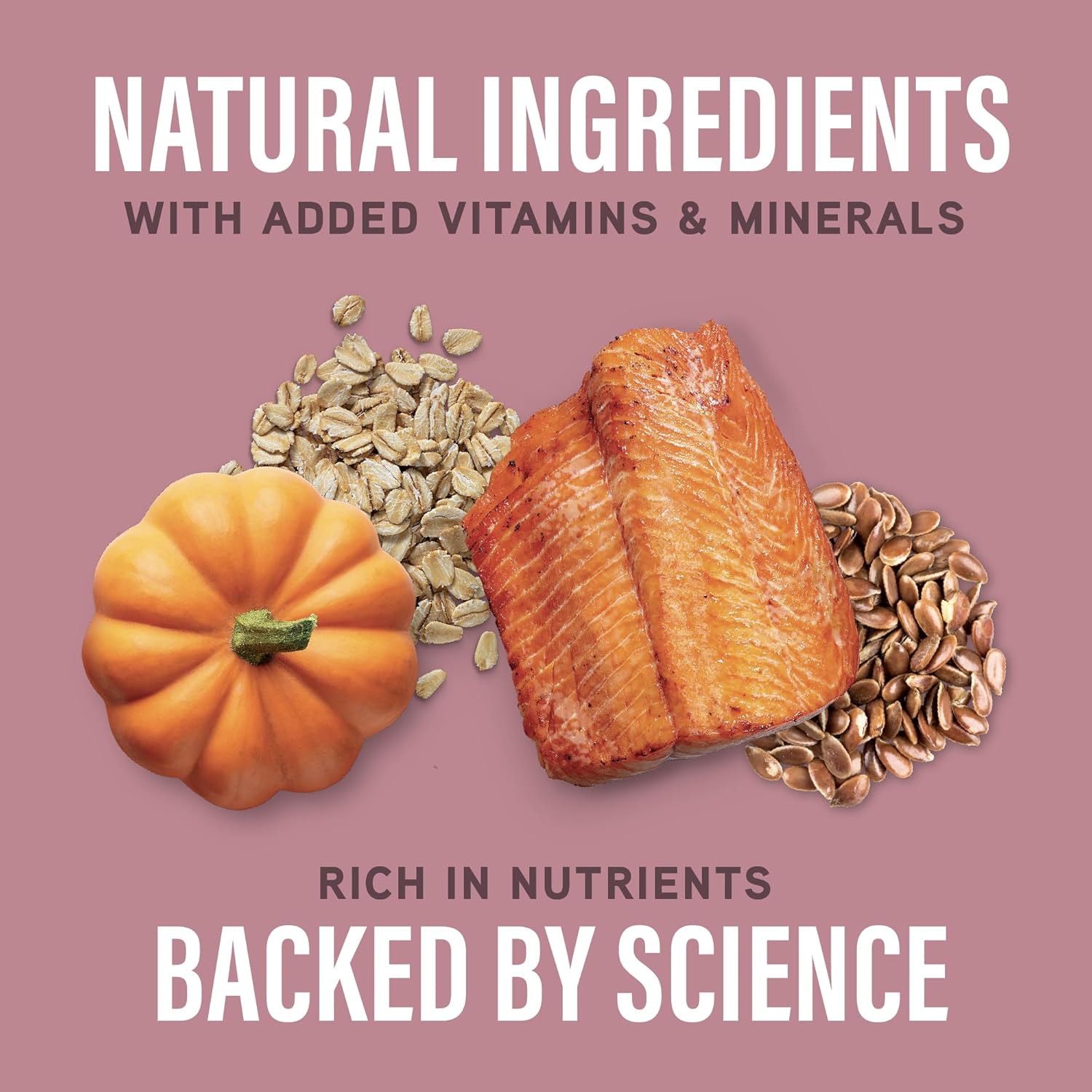 Natural Balance Specialized Nutrition Dry Dog Food, Sensitive Skin & Stomach Salmon & Oatmeal Formula is developed with our veterinarian and nutrition experts to provide your dog with targeted health support, backed by science. This digestive dog food features high-quality, real food ingredients to deliver dog food for sensitive skin. This dog food for itchy skin is packed with key nutrients to deliver optimal support for your dog's stomach and skin and coat health. Every bowl of Specialized Nutrition dog food for sensitivities includes our Vital Bites, nutrient-rich and delicious pieces enriched with vitamins and minerals to support whole body health. Both oatmeal and pumpkin are used in this health support dog food because they are rich in healthy fiber and live probiotics. Crafted with real salmon, healthy fats, and flaxseed, this natural dog food with added vitamins & minerals is rich in Omega Fatty Acids. This recipe is made without corn, wheat, soy or animal by-product meals. This dog food crafted by science is one of the best dry dog foods for skin allergies. This salmon dog food for sensitive stomachs is made with oatmeal for dogs. Try this science backed dog food for skin and coat made by the veterinarian recommended Natural Balance dog food brand.