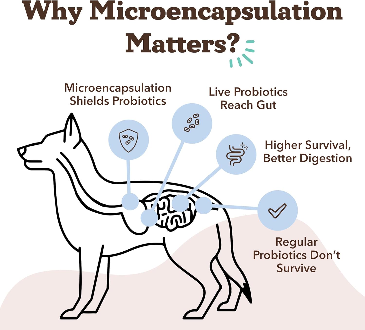 About this item COMPLETE GUT HEALTH: Our advanced dog probiotic supplement features prebiotics, probiotics & digestive enzymes for better digestion, immune support & gut barrier integrity. Helps with gas relief, bloating & stool consistency, making it an essential dog digestive health supplement for all breeds, ages & sizes. MICROENCAPSULATED PROBIOTICS FOR MAXIMUM ABSORPTION: Unlike standard probiotics for dogs chews, our microencapsulation technology ensures live cultures survive stomach acid, delivering optimal digestion, immune boosting benefits & nutrient absorption. Great for dogs with sensitive stomachs, food sensitivities & gut imbalances. DIGESTIVE ENZYME BLEND FOR NUTRIENT ABSORPTION: Our formula includes protease, lipase & amylase to support nutrient absorption, metabolism & gut balance great for dogs struggling with food sensitivities, energy loss & digestive discomfort. PREBIOTIC FIBER FOR A BALANCED MICROBIOME: Our prebiotics and probiotics for dogs include Pumpkin, Psyllium Husk & Fructooligosaccharides (FOS) to fuel good bacteria, regulate digestion & improve bowel movements. These dog gut health chews help promote immune defense, nutrient absorption & overall wellness. EASIER & MORE CONSISTENT DOSAGE: No more confusion! With just one probiotic chew per day, your dog receives probiotics, prebiotics & digestive enzymes for gut balance, digestive support & immunity. Perfect for dogs of all breeds, ages & sizes, making dog gut health chews a simple & effective daily routine. GRAIN-FREE FORMULA: Designed for dogs with food sensitivities, our grain-free probiotic supplement supports gut health, digestion & overall well-being without common allergens. These probiotic dog treats for diarrhea & bloating promote a balanced microbiome, immune support & nutrient absorption. USA-MADE QUALITY YOU CAN TRUST: Crafted in an FDA-registered, cGMP-compliant facility, our natural dog probiotics are NASC-certified, ensuring safety, purity & effectiveness. Designed for all breeds & life stages, this vet-approved probiotic supplement provides complete digestive & immune support. WARNING: Our probiotics dogs chews are designed to be safe and effective, but some dogs may experience temporary side effects such as gas or bloating. Start slowly and consult your veterinarian if your dog has pre-existing conditions. βΊ See more product details