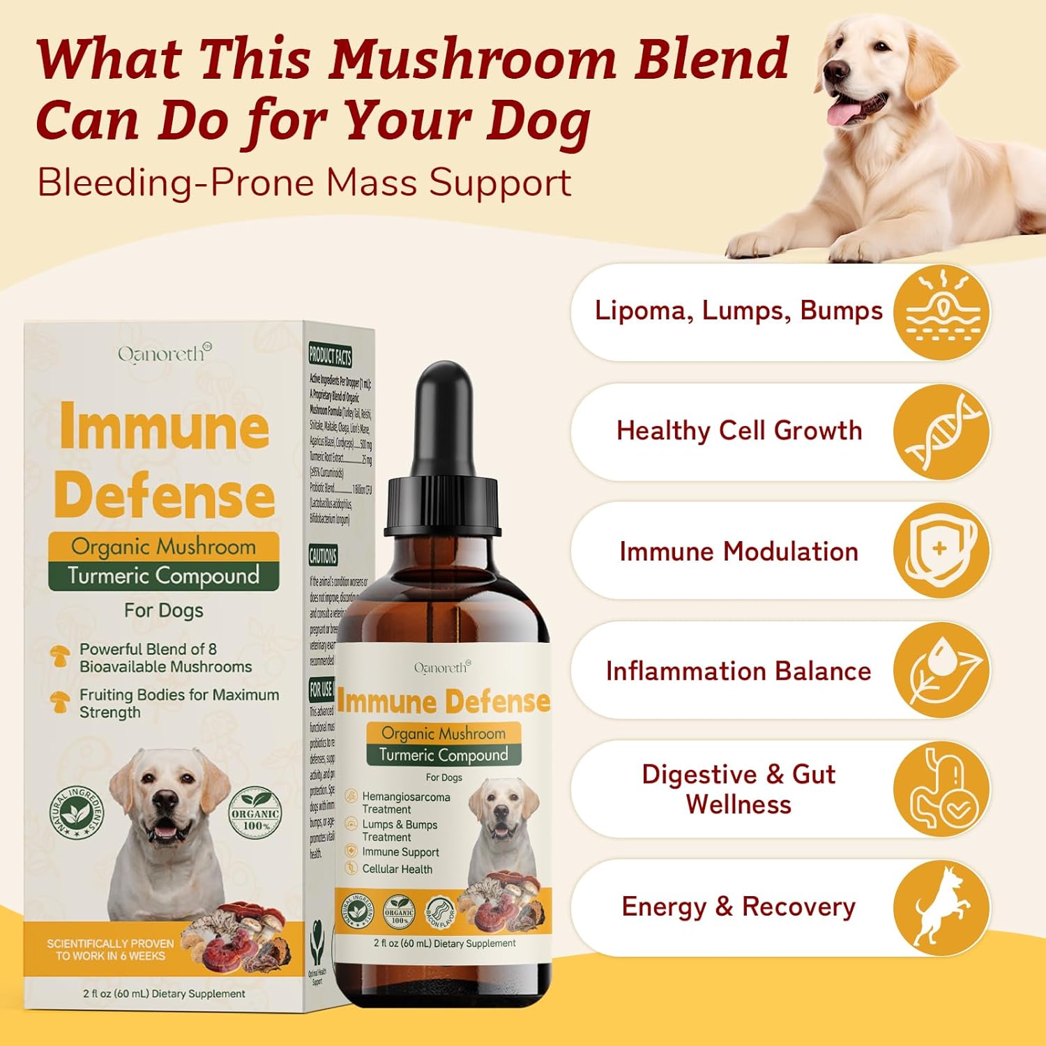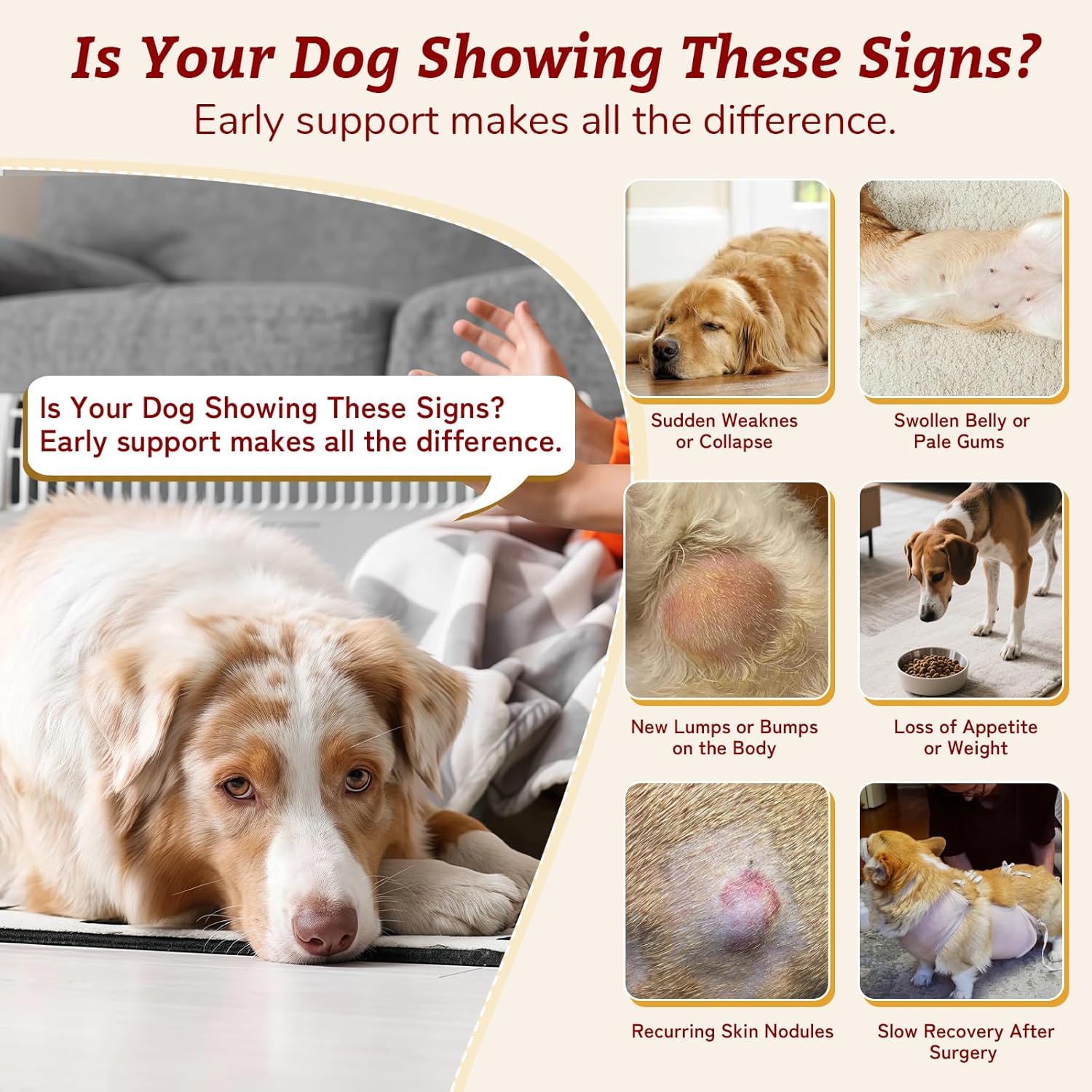 About this item Support For Dogs With Bleeding-Prone Mass Conditions: Sudden weakness, pale gums, or abdominal swelling can be signs of internal bleeding caused by hidden masses in the spleen or liver. Our organic mushroom supplement for dogs formula—led by organic Turkey Tail—helps support immune balance, antioxidant defense, and recovery during high-stress periods. Ideal for dogs with a history of mass rupture, surgery, or general immune vulnerability Powerful Immune Support & Longevity Support :Nothing matters more than time with your dog—and a resilient immune system helps protect it. Rich in bioactive beta-glucans and polysaccharides, our turkey tail mushroom for dogs helps reinforce natural defenses, promote healthy cellular response, and reduce oxidative stress—factors that contribute to abnormal tissue growth. Ideal for dogs facing serious health challenges, help them feel better, stay longer, and live brighter by your side Supports Healthy Cell Growth: Your dog’s body is constantly renewing itself—and healthy cell growth is part of that process. This dog lumps and bumps treatment formula helps maintain normal cell behavior and tissue balance by guiding how cells grow, divide, and repair. By helping healthy cells clear out abnormal ones, it supports long-term wellness and keeps your dog feeling strong from the inside out Inflammation Balance & Digestive Wellness: Chronic inflammation can affect your dog’s joints, skin, digestion, and energy. With high-potency turmeric, prebiotic-rich mushrooms, and probiotics, this lipoma treatment for dogs formula helps calm inflammatory pathways and support tissue comfort. It also helps maintain gut harmony, stool quality, and appetite—bringing lasting comfort to dogs recovering from illness, stress, or age-related changes Vet-Crafted with Powerful Mushroom Immune Booster: This veterinarian-developed herbal formula combines Real Mushrooms Turkey Tail plus 7 other potent blend of premium mushroom varieties—Reishi, Shiitake, Maitake, Chaga, Lion’s Mane, Agaricus Blazei, Cordyceps.—each chosen for their unique bioactive properties. Cordyceps is known to support stamina and vitality, helping your dog stay active and engaged every day. whether you're supporting a playful pup or a wise senior, this dog immune support fits into their life stage with ease › See more product details