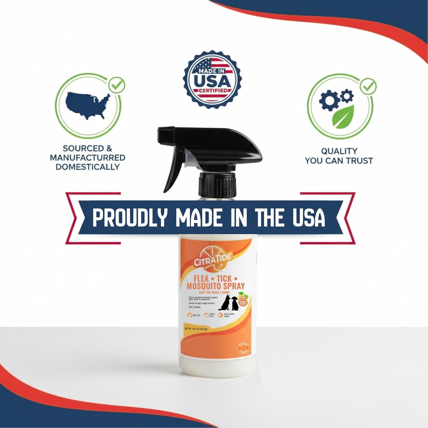 About this item Plant-Based Pest Protection – Natural citronella, lemongrass, and cedarwood oils repel fleas, ticks, and mosquitoes. Safe for Dogs & Large Animals – Gentle, non-toxic formula. Not for use on cats. Use Indoors & Outdoors – Great for coat, bedding, collars, leashes, and outdoor furniture. Fresh Citrus Scent – Light, clean aroma without harsh chemical smell. USA Made & Eco-Friendly – Non-toxic, cruelty-free, and biodegradable ingredients. › See more product details