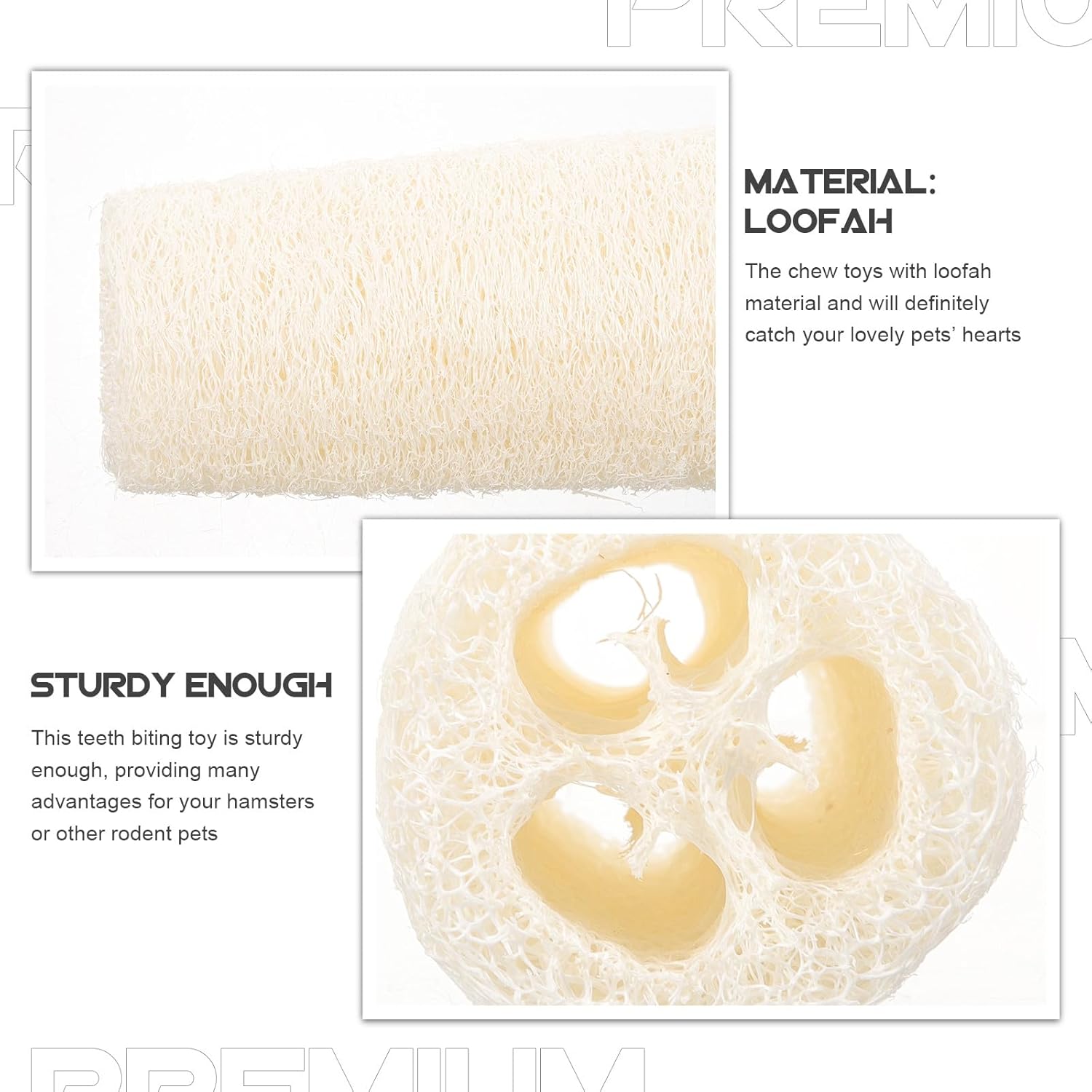 Package Include 1 × loofah chewing Characteristics -Material:Loofah -Note: Natural product, the size of the hole cannot be -Product Info:Pet teeth grinding -Size:10.00X5.00X5.00cm/3.93X1.97X1.97in -Color:Beige - This teeth biting is sturdy enough, providing many advantages for your hamsters or other pets small pet loofah - Pet chew for teeth fits for hamsters, gerbil, rabbits, chinchillas, guinea pigs, bunny, parrot and other chinchilla chew - with loofah material and will definitely catch your lovely pets’ hearts - Almost all types of pets love to chew, your pet can play this set without any misgivings small animal molar . - These rabbit guinea pig chew can provide fun and anxiety relief for small animals chew molar pet Goods Informationpet This loofah chewing is in suitable hardness, your pet will love to grind their teeth with it.chew for rats Suitable for hamster, squirrel, rabbits, guinea pig, etc.bunny chewing The teeth of small pets grow faster, need to give your pet some that can grind teeth
