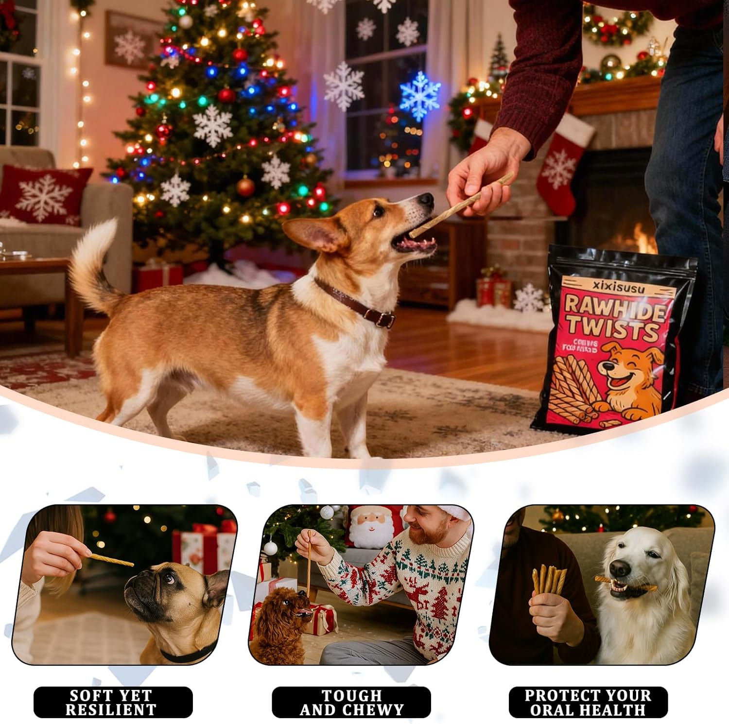 About this item Long-Lasting Chews: These 5-inch rawhide chews provide extended chewing sessions for dogs. Made from durable rawhide dog chews material, they satisfy natural chewing instincts and keep pets occupied with these satisfying dog rawhide sticks. Dental Health Support: Our rawhide sticks are designed as effective dental chews for dogs. The abrasive texture helps clean teeth and reduce tartar buildup, making these dog teeth cleaning chews a practical solution for oral hygiene maintenance. Ideal for Medium Dogs: Specifically sized for medium breeds, these rawhides for dogs offer the perfect balance of challenge and safety. These rawhide chews for large dogs also work well as introductory chews for bigger breeds. Satisfying Texture: Dogs love the firm yet chewable consistency of these dog rawhide bones. The appealing texture makes them perfect dog chewy treats that maintain interest while being safer than harder alternatives for dog dental chew sessions. Great Value Pack: Get 60 count of premium dog rawhide in this bulk package. Stock up on these popular dog treats rawhide and always have rewarding chew sticks for dogs available for your pet's daily chewing needs and dental care routine. › See more product details