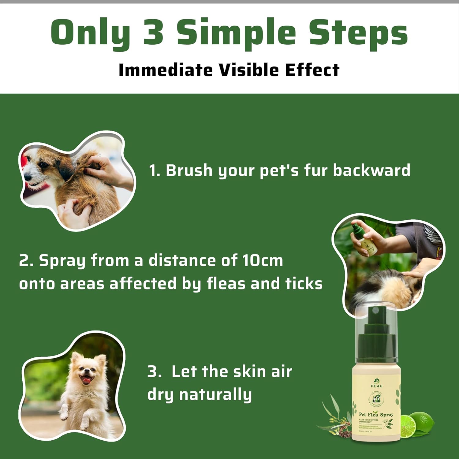 ๐ก๐ฎ๐๐๐ฟ๐ฎ๐น & ๐๐ฒ๐ป๐๐น๐ฒ ๐๐ผ๐ฟ๐บ๐๐น๐ฎ: Made with eucalyptus lemon oil, our anti-itch spray soothes dry, irritated skin caused by allergies, hot spots, and dermatitis, keeping your petโs paws and skin healthy. โบ See more product details