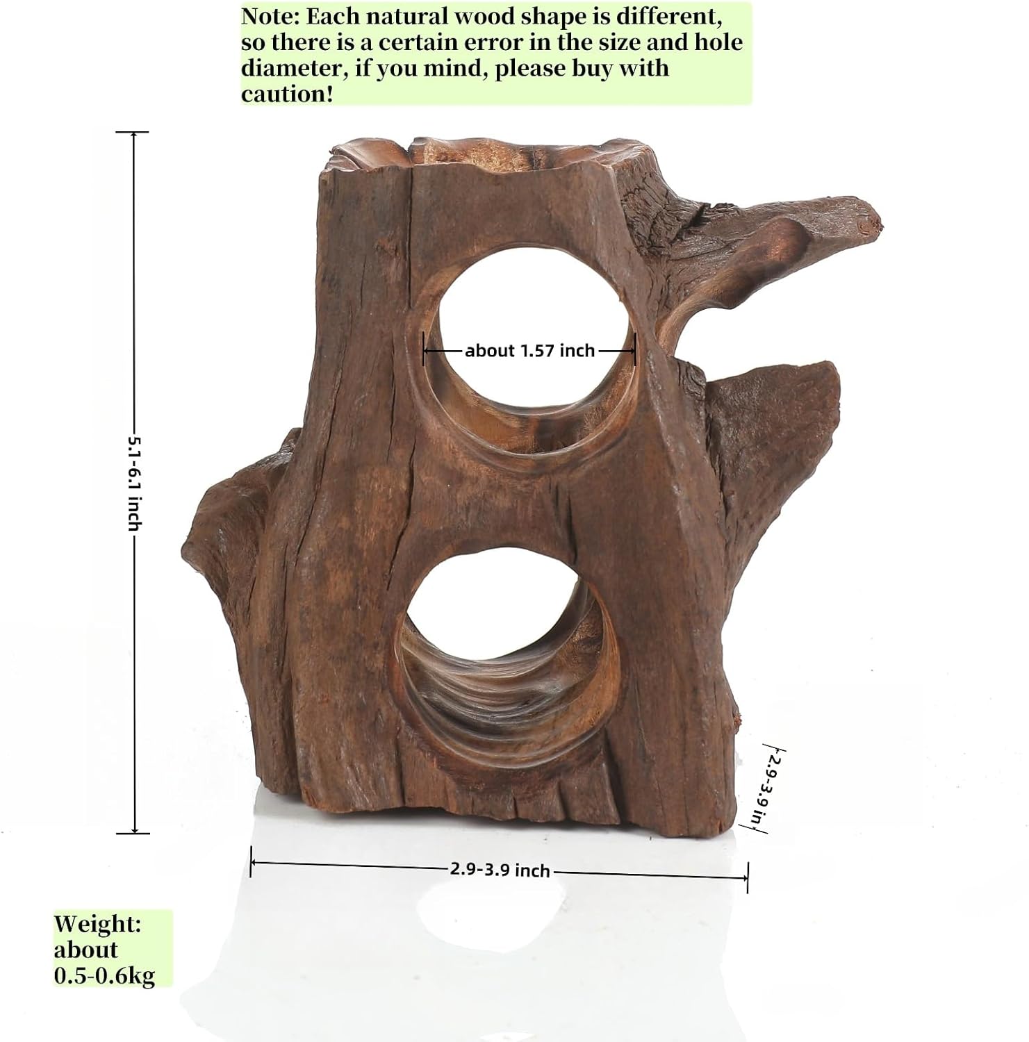 About this item 【Natural Sunken Wood】Note:Each aquarium hideout is made from natural sunken wood,so it has a unique shape and looks different from different angles.The picture shows only some of the driftwood cave products, what you receive may be different from what the picture shows. They are made of natural high-quality sunken wood, which is hard and durable, and can be used for a long time in water or arid environment 【Tree cave Modeling】Crafted with intricate hollow structures, this aquarium cave encourages betta fish, lizards, shrimp, snakes, bearded dragon and other reptiles to explore, hide, and weave through its natural tunnels—turning their habitat into a playground of endless curiosity and enrichment 【Amphibious Used】Natural sunken wood is suitable for simple fish tank decoration. It can not only be used as decoration for aquariums hideout,such as fish cave,shrimp hides ,betta cavel, but also as decoration for reptiles hideout. The driftwood aquarium provides a place for pets to play, hide, and relax, relieving their stress 【Suitable for 10 gallons and above】Unlike similar sunken wood decorations on the market, our aquarium huose designed for fish tanks considers the best medium, large tank size, which is very suitable for various aquariums, snake tanks, etc! The length ranges from 6.1 inches to 9.8 inches. They can immediately add natural beauty to your aquarium amphibian enclosure 【Pre treatment of driftwood】Yellow Water Removal:Place the driftwood in a container and boil it three times, changing the water three times in between to extract the tannins. The total process should take about two hours. Afterwards, soak the driftwood in cold water. Repeat this procedure for three days. Then, soak the driftwood in cold water for one to two weeks until no more yellow water is released. Then it is ready for use in an aquarium.: If you need to use it urgently, you can use protein cotton to quickly remove the yellow water › See more product details