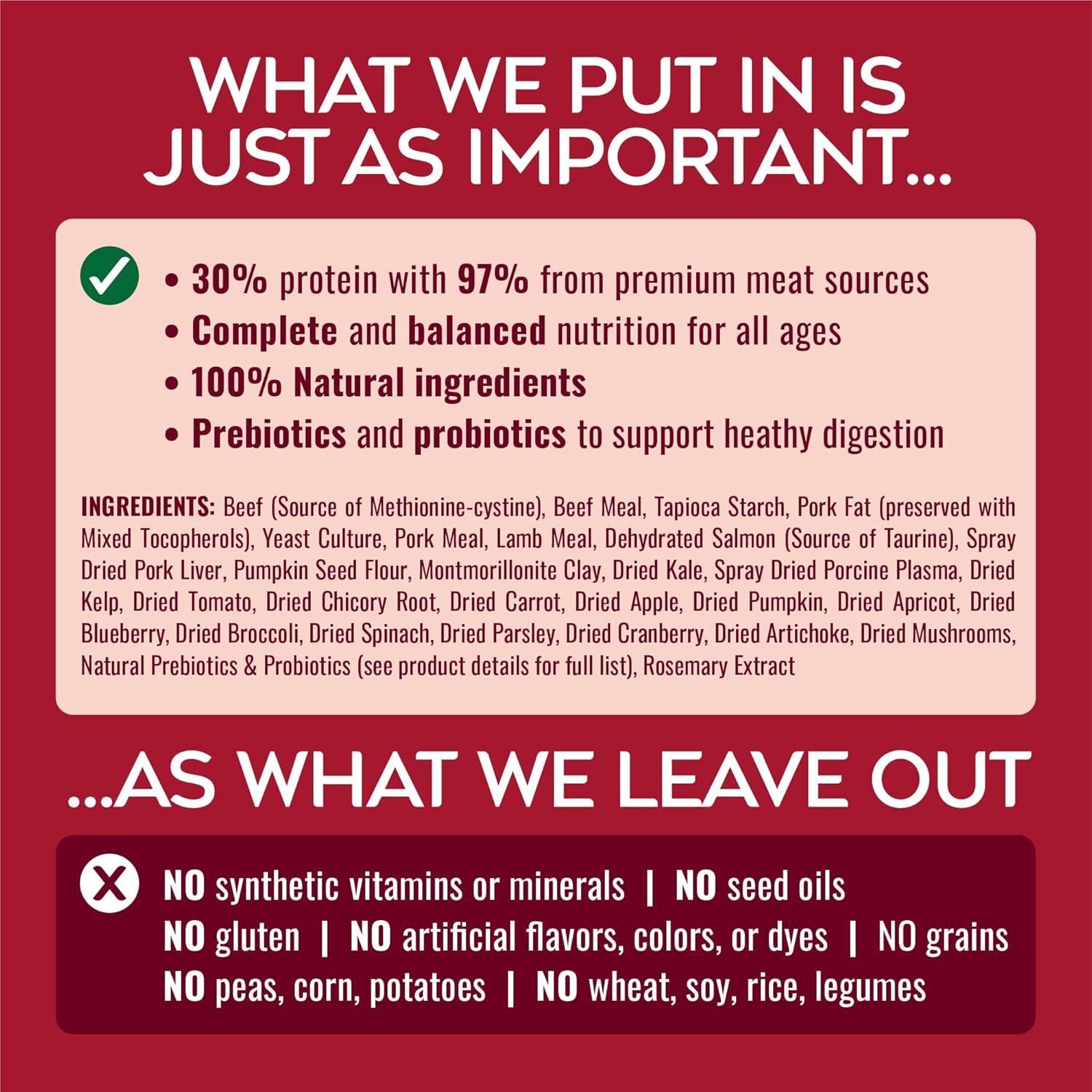 Give your dog a diet that’s as close to nature as it gets. Nature’s Logic PURE NATURALS™ Beef Recipe starts with real beef as the first ingredient and delivers 90% of its protein from premium animal sources - fueling strong muscles, energy, and a taste dogs love. Every bite is truly 100% natural, with all vitamins and minerals coming from real food ingredients, instead of using synthetic nutrients, flavors or additives, delivering a natural nutrition your dog’s body can recognize and absorb. This complete and balanced recipe is perfect for puppies, adults, and seniors of all breeds. It’s naturally gluten-free and made without common fillers like corn, wheat, soy, peas, lentils, potatoes, or seed oils, making it gentle on sensitive stomachs. Plus, it’s chicken-free and rich in natural taurine, prebiotics, and probiotics for heart health, digestion, and immune support. Nature’s Logic kibble is crafted using 100% renewable electricity, and every bag is made with 30% recycled materials.