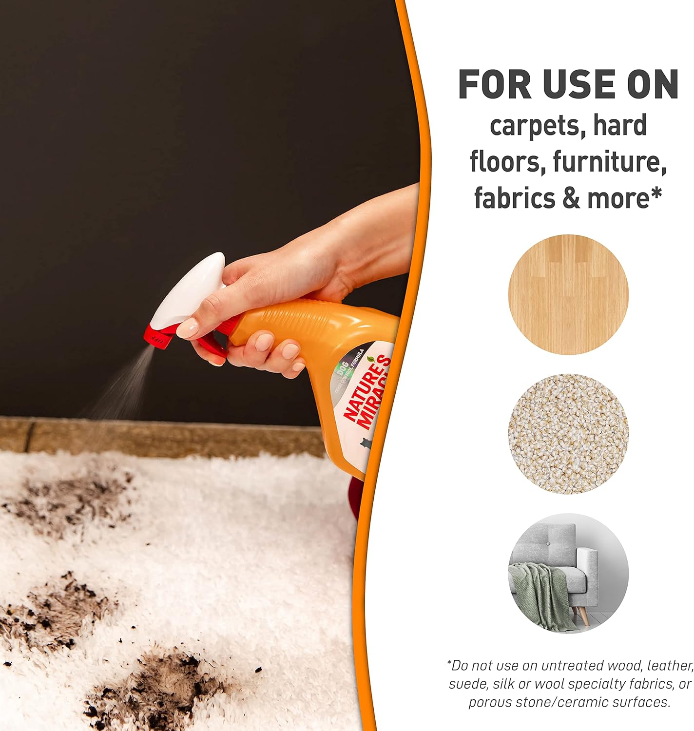 Nature’s Miracle® pet stain and odor removers have been a trusted brand for pet mess cleanup for more than 35 years. Whatever pets do, you can trust Nature’s Miracle stain and odor removers, training aids, disinfectants and litter products to undo. Accidents happen, as every cat owner knows. When they do, Nature’s Miracle® Oxy Formula Set-In Stain Destroyer for cats penetrates, separates and lifts embedded stains and odors while freshening with a light orange scent. Use on carpets, hard floors, furniture, fabrics and more (see the product label for a complete list of fabrics). Safe for pets and home when used and stored as directed. Always use this product at full strength. Just apply, wait 15 minutes, then blot up stain with a clean cloth. Always use Nature’s Miracle products first. Other cleaners and detergents may fail and chemically “set” stains that will be impossible to remove. Nature’s Miracle Oxy Formula Set-In Stain Destroyer can also be used for laundry – saturate stained areas with this product at full strength before starting your washer cycle. Let treated garments set up to 5 minutes, then wash as usual per fabric label directions.