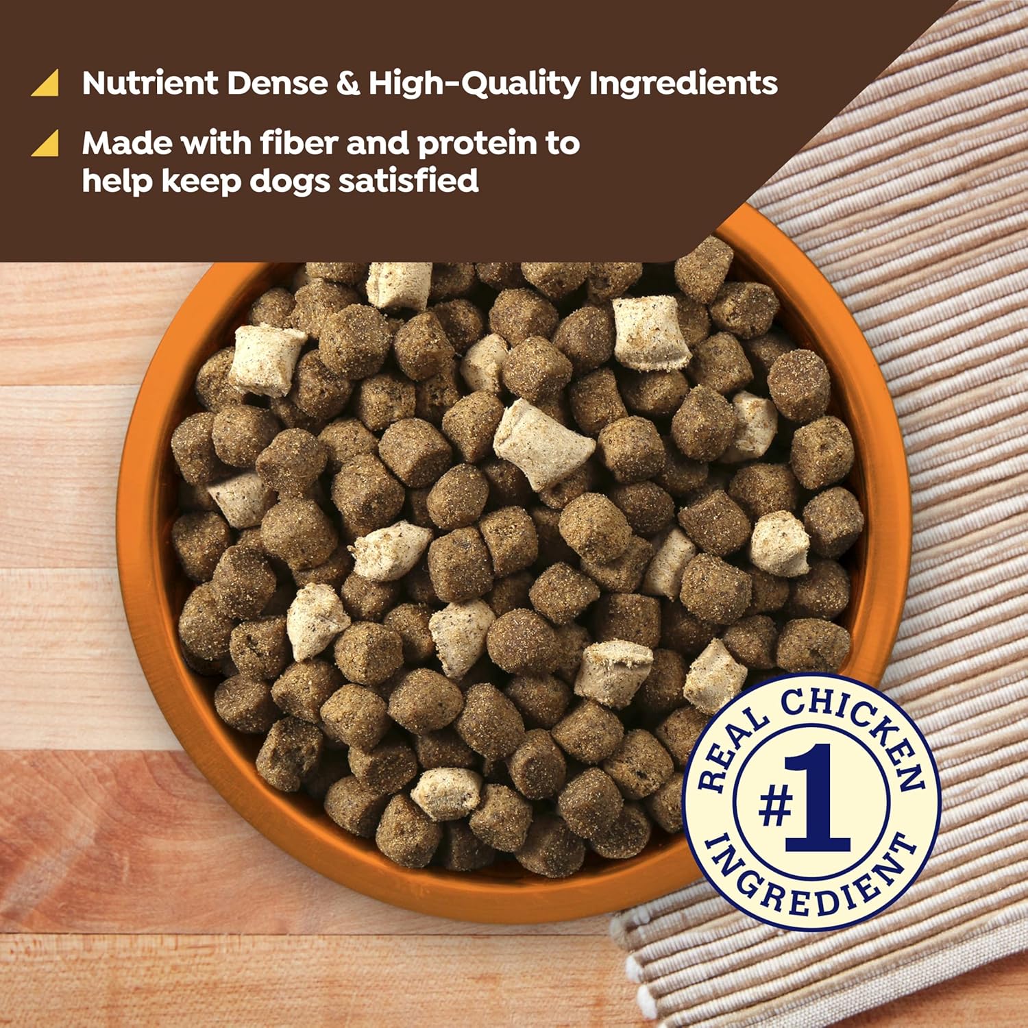Your dog deserves delicious and nutritious food, and Nature’s Recipe Freeze Dried Chicken, Barley & Brown Rice Dog Food delivers just that. It's formulated by expert pet nutritionists, and every single ingredient is picked with a purpose. Crafted with real chicken as the #1 ingredient, this irresistible blend of freeze-dried chicken bites and crunchy dog food kibble is sure to delight your adult dog. This premium dog food is enriched with Omega-6 fatty acids to promote healthy skin and a shiny coat; and with fiber and protein to help keep your dog satisfied. Made with nutrient-dense, high-quality ingredients, this natural dog food with added vitamins, minerals, & nutrients provides complete and balanced nutrition—without artificial preservatives, colors, or flavors, and no poultry by-product meal. Every meal is a step toward helping your pet thrive with wholesome, delicious nutrition they’ll love.