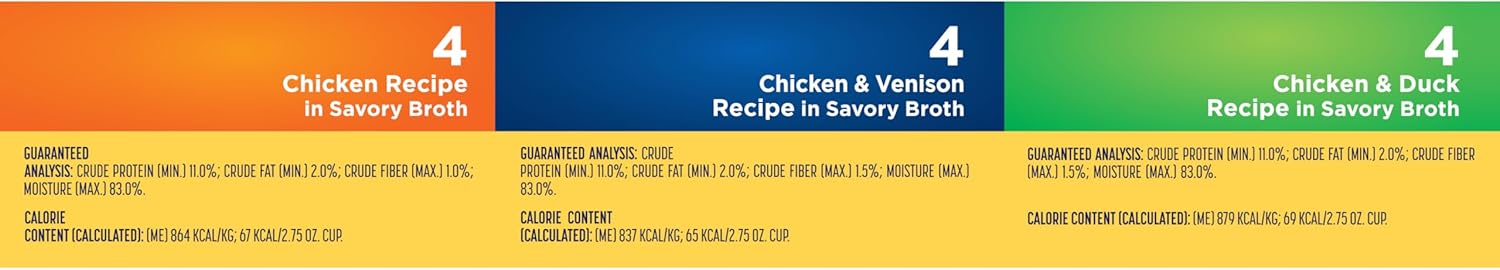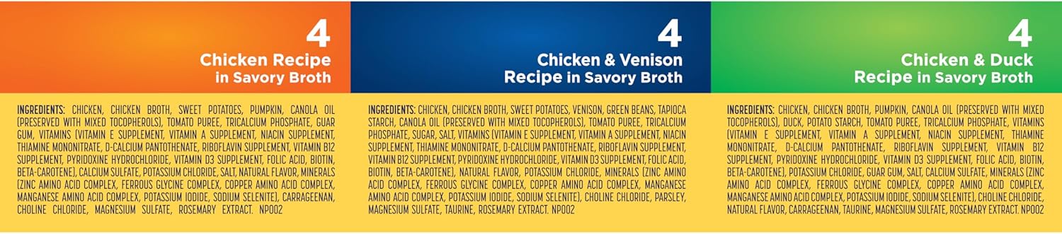 Product Description Make every meal a wag-worthy experience with Nature’s Recipe grain free dog food recipes. This wet dog food variety pack includes three delicious recipes made with real chicken as the number one ingredient: Grain Free Chicken & Duck Recipe in Savory Broth, Grain Free Chicken Recipe in Savory Broth and Grain Free Chicken & Venison Recipe in Savory Broth. These natural dog food recipes are made with added vitamins, minerals and nutrients to help support all your dog’s needs. And because we believe that every ingredient counts, you’ll find no added corn, wheat or soy, no poultry by-product, and no artificial flavors or preservatives in any of these purposefully crafted recipes. So, peel back the lid and fuel the wag with tasty meals that provide all your dog needs, and nothing they don’t. Manufacturer Contact Information Post Consumer Brands, 20802 Kensington Blvd, Lakeville, MN 55044