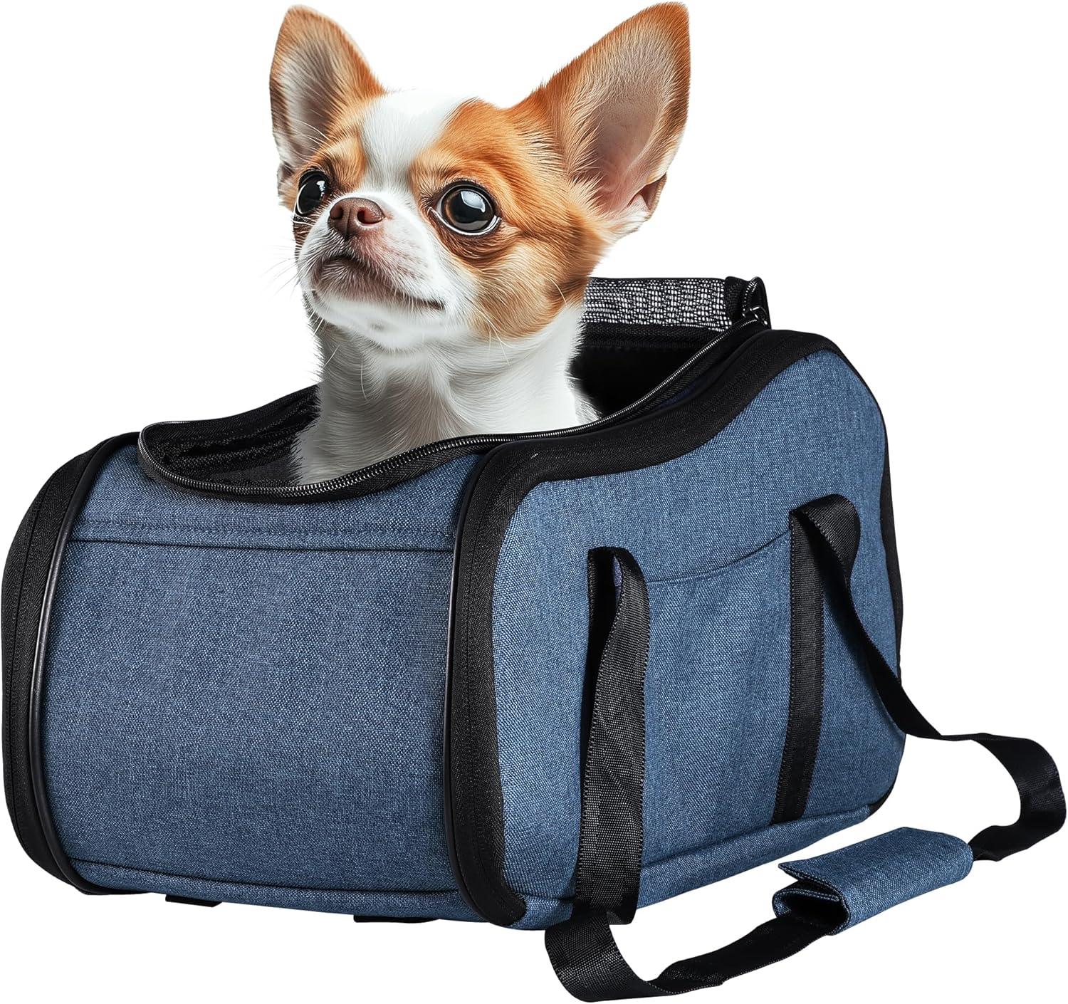 READY TO TAKE YOUR PET ON TRIPS IN COMFORT AND STYLE?Ensure your pet's security and comfort during travel with this dog car seat by Navaris. Designed specifically for small to medium-sized pets, this booster seat is the perfect solution for car rides with your furry friend. This pet car seat doubles as a dog car carrier, providing a secure and comfortable spot for your pet to relax while on the road. This essential pet accessory is designed to keep your pet secure during sudden stops or turns. The puppy car seat is also incredibly comfortable, making it a cosy carrier and travel dog bed that your pet will love.HIGHLIGHTS:- Long handles for carrying- Suitable for dogs and cats- With zipper and leash features- Dog carrier, dog car seat, and bed in oneSPECIFICATIONSMeasurements: 14.96 x 9.45 x 9.45 inch | 38 x 24 x 24 cmMaterials: Oxford, polyesterColours: Blue and blackProduct Info1 x Pet seat