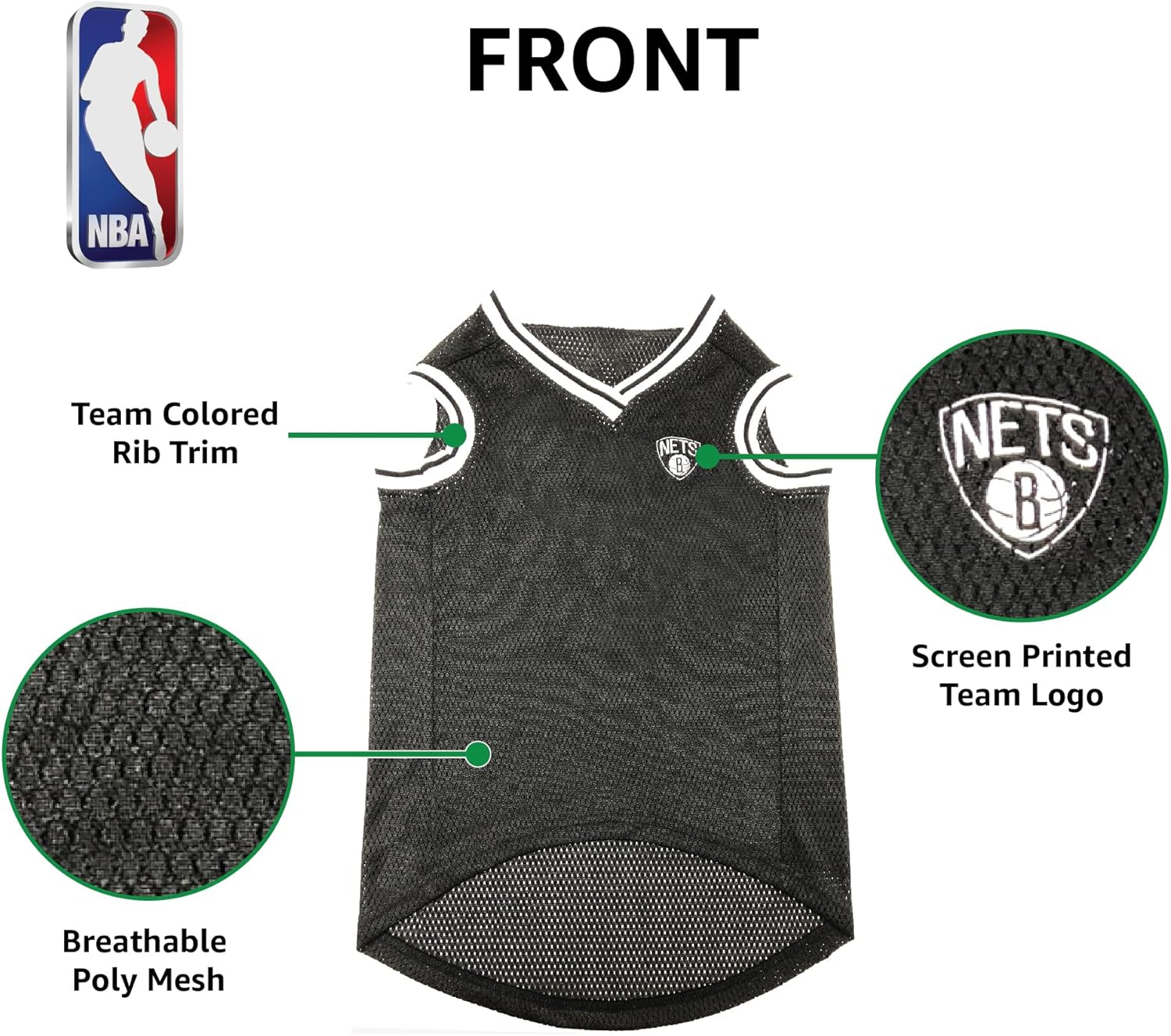 Get your dog ready for game day with this high-end NBA licensed pet jersey!!! This pet mesh jersey is designed to get you & your pet in the right spirit for game-day. Designed using wrinkle free poly-cotton material yet durable & soft to ensure comfort! Your pet will become a #1 fan with this officially licensed basketball Jersey. The OFFICIALLY LICENSED NBA DOG & CAT JERSEY It has a team city, logo, team logotype and number on the back, Looks just like the real Jersey of your favorite Basketball player! The poly-mesh body creates a TAILORED FIT, while mesh panels provide ultimate comfort. Score a touchdown with this authentic NBA PET JERSEY so your entire family is ready for game day! Get ready for some BASKETBALL with a jersey that includes TEAM NAME, LOGO and NUMBERS. The back of the jersey features a woven jock tag, with an area for personalization. A perfect and SUPER CUTE PET OUTFIT for all sports & game fans! - Great as a gift to your loved ones too! Whether you are looking for an apparel for your dog or cat, or just wanna show off your favorite school, this CUTEST DOG JERSEY will surely do the tricks! Your pet will feel proud wearing this decorative dress shirt, & you: get ready to receive many compliments! Love to match?? While you buy this coolest JERSEY for your pet, why not buy our matching PETS FIRST NBA PET GEAR? NBA Dog Collars - Comes in 3 sizes in a beautiful collegiate team design. NBA Dog Hoodie T-Shirts - Comes in 4 sizes with a gorgeous team Logo & design. NBA Dog Reversible BANDANAS - Comes in 2 sizes, has a HOME & AWAY design! - My favorite! NBA Dog Leashes - Comes in 3 sizes with a matching team logo design. NBA Dog Toy or Cat Toy. - Too many Pets First NBA Pet Toys to list here! Buy the whole NBA Pet Collection & you are sure to be READY for ANOTHER GREAT WIN!!! * Don't forget to check out our Premium Training Pads, AKA the BEST Puppy Pads sold on Amazon! SIZING: This DOG JERSEY is available in 6 SIZES. Choose from; X-Small, Small, Medium, Large, X-Large and XX-Large. To choose the correct size: Measure your pet from the nape of the neck to the base of the tail and follow the illustrated size chart located under the item's picture! Choose your size and ADD TO CART Now before we run out of stock again!!! Our LICENSED PET BANDANAS comes in most NBA TEAMS: Atlanta Hawks, Boston Celtics, Brooklyn Nets, Charlotte Hornets, Chicago Bulls, Cleveland Cavaliers, Dallas Mavericks, Denver Nuggets, Detroit Pistons, Golden State Warriors, Houston Rockets, Indiana Pacers, LA Clippers, Los Angeles Lakers, Memphis Grizzlies, Miami Heat, Milwaukee Bucks, Minnesota Timberwolves, New Orleans Pelicans, New York Knicks, Oklahoma City Thunder, Orlando Magic, Philadelphia 76ers, Phoenix Suns, Portland Trail Blazers, Sacramento Kings, San Antonio Spurts, Toronto Raptors, Utah Jazz. PETS FIRST: Pets First company has established itself as the largest sports-licensed pet product company in the country. Pets First has gained its reputation in providing every pet owner with premium licensed pet products; from unique and colorful apparel items to fun and playful toys and accessories. Working with the latest technology, our creative designers choose from the highest quality materials to provide durable, unique and innovative pet merchandise. Our factories follow the highest standards of safety guidelines to ensure your pet's security, while providing a long lasting product. Licenses: Pets First has secured licenses with Major League Baseball (MLB), Major League Baseball Players Association (MLBPA), the National Football League (NFL), National Football League Players Association (NFLPA), National Hockey League (NHL), National Basketball Association (NBA), Major League Soccer (MLS) (Real Madrid C.F. Soccer club Real Madrid Club de Fútbol), LAURDIY, REALTREE & over 50 of the top colleges in the country (NCAA). >>> Always make sure to purchase from an approved seller such as Amazon to avoid buying counterfeit products! <<