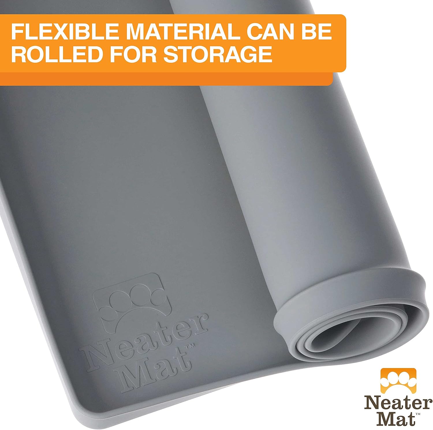 About this item PET MATS PROTECT FLOORS FROM SPILLS: Neater Mat pet mat goes under your cat or dog’s food and water bowls to catch any spills or splashes from getting onto your floor. WATERPROOF SILICONE: Made of 100% waterproof silicone this mat for dog food and water bowls protects your floor from food and water spills. Silicone is BPA free and food-safe. It’s also easy to roll up for storage or travel. EXTRA-HIGH RAISED EDGE: Dog water bowl mat measures 19” x 12” with a ½ inch raised edge. Having an anti-spill edge helps contain the water on the pet mat and prevent run-off. Cat or dog feeding mat easily fits two small to medium sized bowls. EXTRA-THICK ANTI-SLIP BOTTOM: What makes our heavy-duty dog mat for food and water different from others is that we made it of extra-thick silicone that won't tear or fall apart. These pet food mats for floor waterproof silicone material provide a strong grip with bowls and floors to prevent sliding. EASY TO CLEAN: The Neater Mat dog bowl mat has a smooth surface that makes it easy to clean. To dispose of food, fold the mat and take it to the trash to dump it out. The mat can then be wiped off with a wet cloth, rinsed off at the sink, or put in the dishwasher. › See more product details