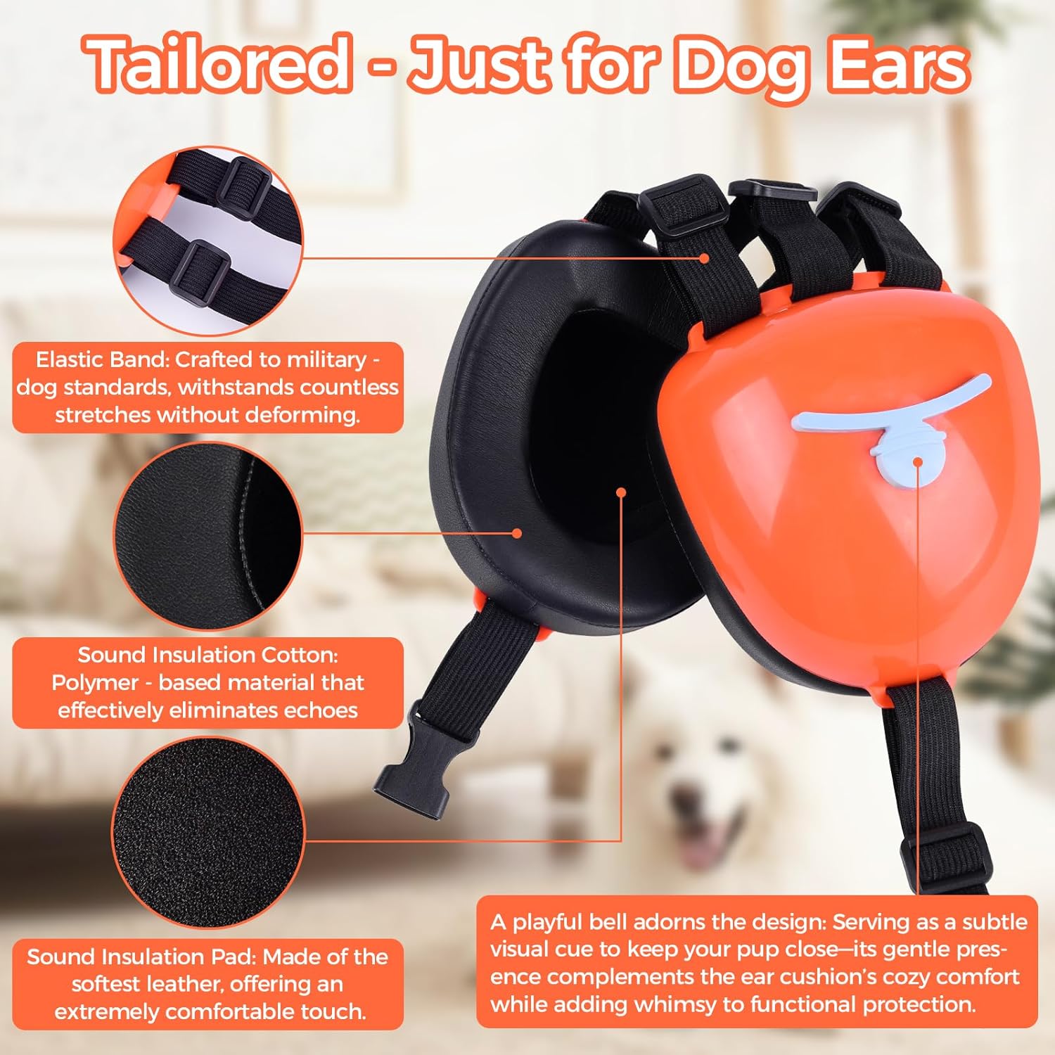 About this item Professional Design - Does your dog get anxious during thunderstorms, fireworks, or other loud noises? Our engineers have conducted extensive experiments to develop these noise-cancelling earmuffs specifically designed for dogs—now upgraded with a sleek bell accent design—to protect your furry friend from noise stress while adding a touch of stylish flair. The focus remains on effective noise cancellation, now paired with a fresh, eye-catching look. Why Use Earmuffs for Dogs - The structure of a dog's ear is very different from that of a human's. While humans can hear sound frequencies between 20Hz and 20,000Hz, dogs can hear frequencies between 15Hz and 50,000Hz, a much broader range. Therefore, dogs are much more sensitive to noise than humans. Protecting your dog's ears is more important than you may realize. Relieve Pet Anxiety - Does your dog sometimes get overly excited and then appear lethargic? This may be caused by noise. Our dog earmuffs are made of high-density soundproof cotton, and the adjustable elastic band has a wide range of adjustments. The part that contacts your dog's body is made of soft materials, ensuring your dog can wear it comfortably. Plus, the subtle bell accent on the exterior adds a charming detail without compromising on comfort or noise protection. Three Different Colors and Four Sizes - Our dog earmuffs come in four sizes and three stylish colors: small, medium, large and X-large, in blue, purple, and orange. We have a size chart to help you choose the right size based on your dog's head size and weight. The earmuffs have space to fold your dog's long ears, but if their ears are too long, you can leave some of them outside and tighten the elastic band to achieve optimal noise-cancelling effects. Customer Support - We strive to make every product the best it can be and ensure all dogs are satisfied. However, with so many different breeds of dogs, we cannot guarantee that our dog earmuffs will fit every dog. If you find that our earmuffs do not fit your dog, we hope you can understand. Please feel free to contact us if you have any questions, and we will reply within 24 hours. › See more product details