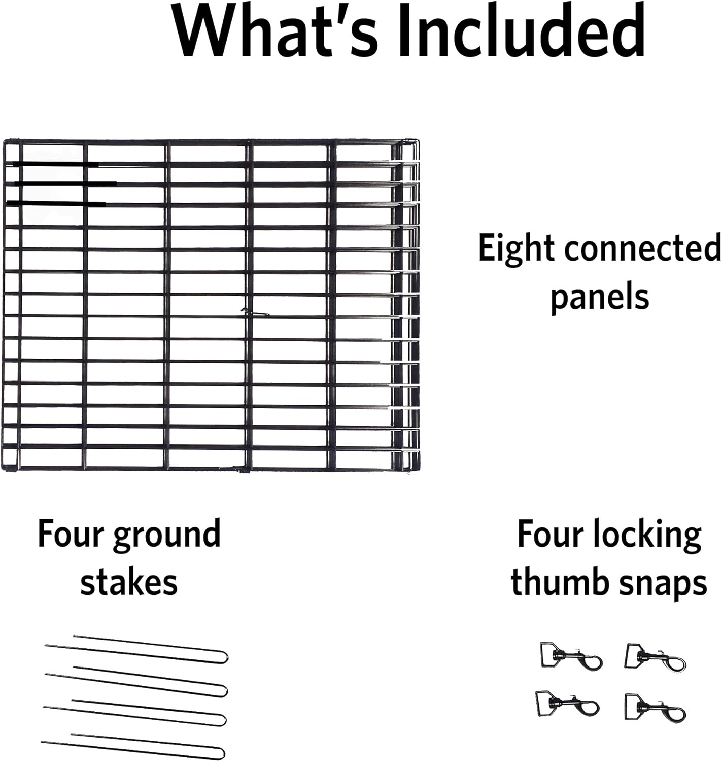 The New World Metal Exercise Pen / Pet Playpen provides a great enclosure to keep your pet safe and secure while indoors or outside. These Exercise Pens / Pet Playpens are made of durable metal wire that features a black E-coat finish for long lasting protection against rust and the elements. The New World Black Exercise Pen / Pet Playpen by MidWest Homes for Pets consists of 8 - 24" wide panels and is available in 6 different heights. When fully expanded, the Exercise Pen / Pet Playpen provides your pet with 16 square feet of enclosed living area. Each durable metal Exercise Pen / Pet Playpen is simple to set up (no tools required) and includes 4 ground stakes for secure set-up while being used outdoors and 4 thumb-snaps for easy assembly. These versatile Exercise Pens / Pet Playpens can be used for a variety of pets and fold flat for convenient storage when not in use. Make sure to check out the additional Sunscreen or Wire Mesh Top for the Exercise Pen / Pet Playpen if you want to add additional security or shade to the pen when using it outdoors. As always, MidWest Homes for Pets stands behind the quality of our products with a 1 year Manufacturer's Warranty.