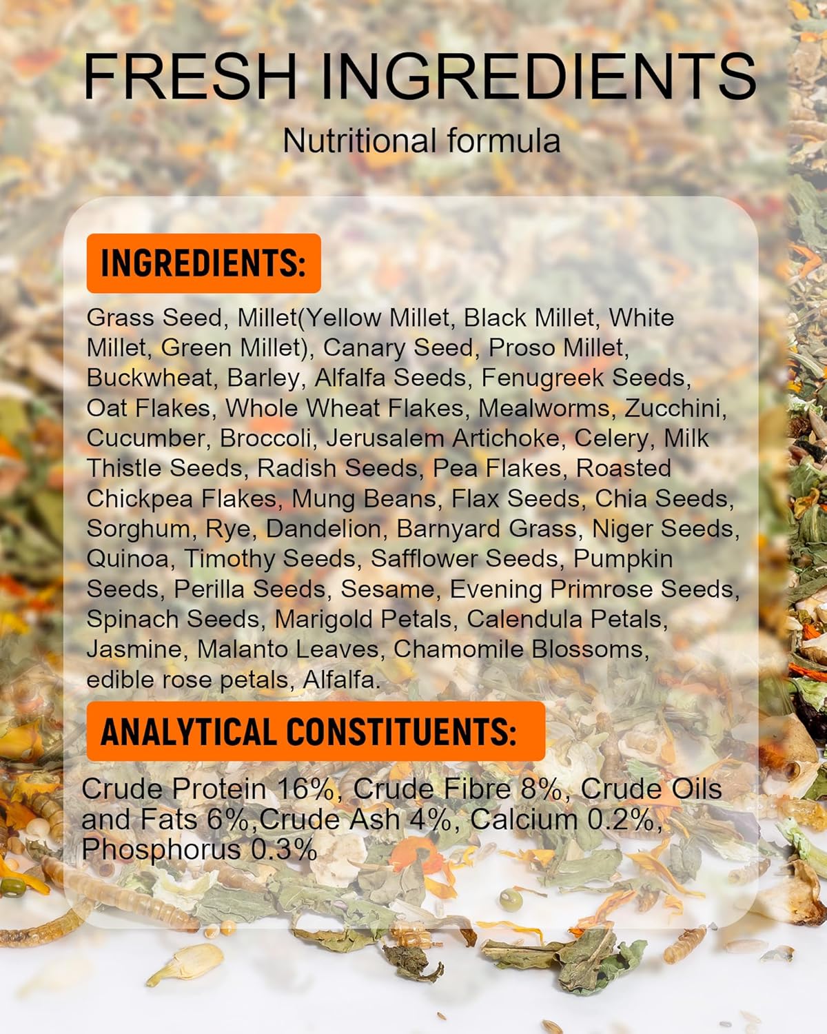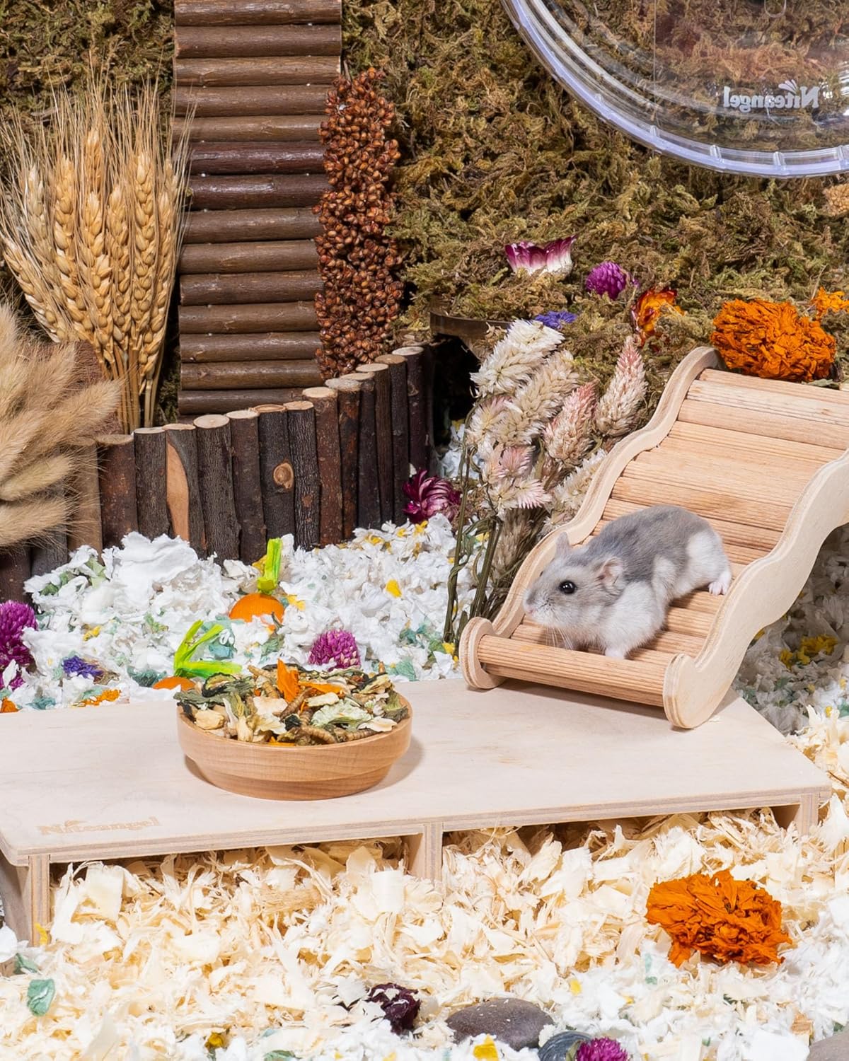 Specially Designed for Dwarf Hamsters: Niteangel Dwarf Hamster Food is thoughtfully crafted to suit the unique dietary preferences and smaller size of dwarf hamsters. This customized blend is designed to provide a wholesome, satisfying meal that supports their daily activity and keeps them content. Wholesome Ingredients for Balanced Carefully: Niteangel blend includes carefully selected seeds such as millet, buckwheat, and alfalfa, paired with nutritious vegetables like zucchini, cucumber, and broccoli. Protein-rich mealworms and pea flakes complete the mix, offering a well-rounded variety of flavors and nutrients tailored to meet your pet’s needs. Pure and Natural, No Additives: At Niteangel, we are dedicated to offering your golden hamster the best in natural nutrition. Our Hamster Food Mix contains no additives, or unnecessary ingredients, ensuring every bite is packed with wholesome goodness. With Niteangel, you can confidently give your pet with a premium, balanced diet that supports their overall happy. Promotes Dental Well-being and Enrichment: Crafted to support dental Well-being, our hamster food includes crunchy elements like roasted chickpea flakes and a blend of nutritious ingredients such as pumpkin, safflower, and flax. This combination helps maintain dental hygiene and provides mental and physical enrichment, keeping your hamster active and engaged. Versatile and Ideal for Your Small Pets: Each ingredient is chosen and prepared to match the smaller mouths and dietary habits of dwarf hamsters. This ensures that mealtime is not only nutritious but also easy to enjoy, making it an ideal choice for your tiny companion. › See more product details