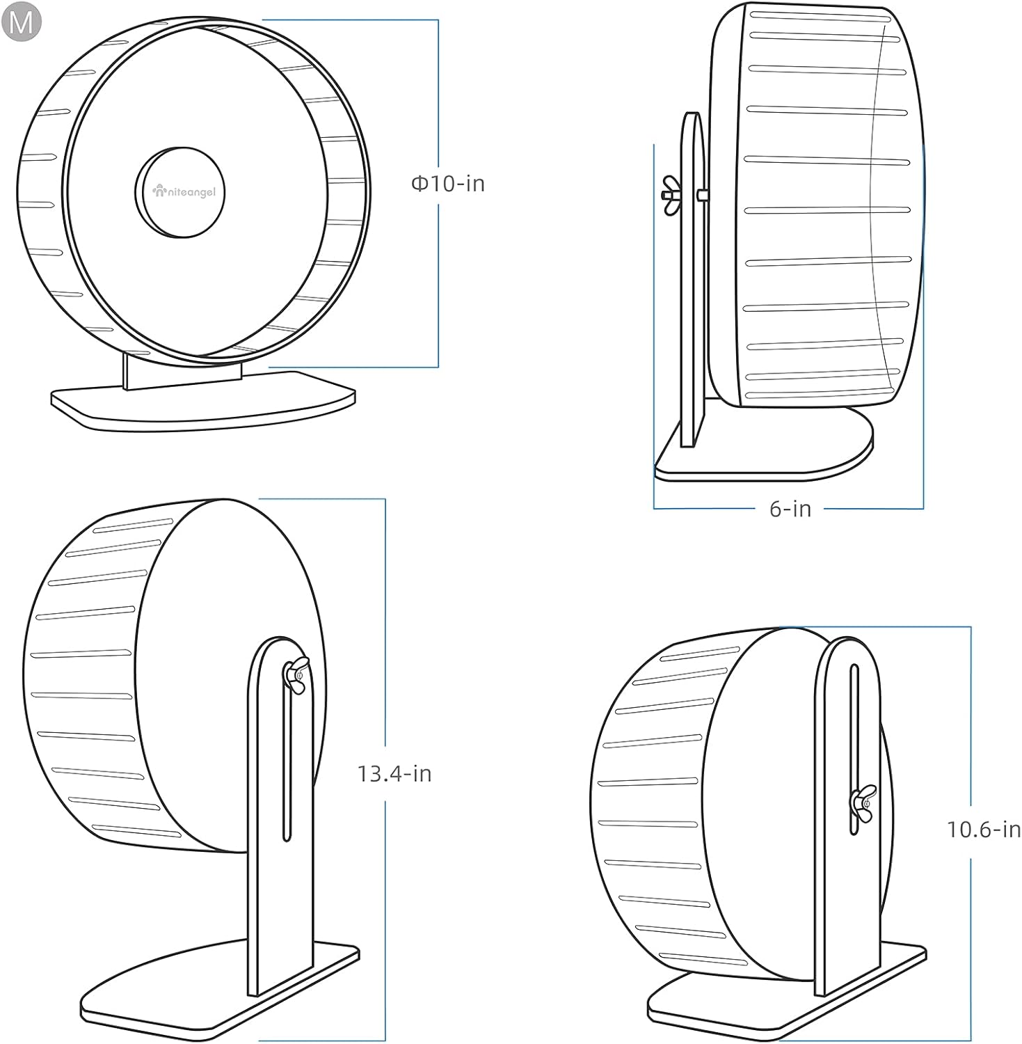 About this item Super Silent 10-Inch Hamster Wheel - Niteangel Silent Spinner Hamster wheel designed with Dual Ball bearings, it brings your little hamster endless running happiness, also brings you a quiet night even if your hamster on the race track to run & hamster wheel is spinning Must-have hamster cage accessories - Your furry critter will love this hamster wheel Toy as Hamsters love the hamster rolling wheel like a runner to help them to broken boredom & enrich their nighttime, also keep them to exercise for maintaining their strength and well-being Comfort Hamster Wheel - Reasonable Size of Running Drum & Wide Running track brings a relax back feeling, as they do not need to bend their back when running, let them enjoy their endless running time, help them to build own muscle, keep them happy & mental well-being Adjustable Height & Solid Base - Designed for your pet to get in or out securely & easy to access, Variable height is between 1-inch (ca. 2.5cm) and 4-inch(ca. 10cm) bottom height, you can adjust the height of the hamster wheel's running drum to fit the species of pets you cared for or the height of the bedding materials you used. The solid base design brings your convenience when using a DIY cage, terrarium, glass tank, or set it down on a platform Durable Toy & Cute Decor - Made with PS plastic (Running Drum) & Acrylic(Base of hamster wheel), high transparent & chewing-resistance, sturdy Design achieves a reliable standing & support when running or walking. More colors available to choose, bring fresh things on your habitats decor › See more product details