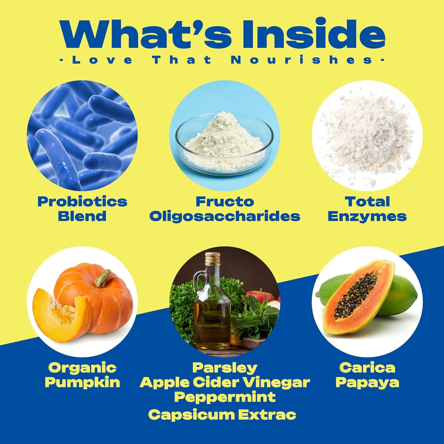 - Active Ingredients: Probiotic Blend (Lactobacillus Casei, Bacillus Subtilis, Bifidobacterium Animalis, Lactobacillus Reuteri, etc.) Fructo Oligosaccharides (FOS) Total Enzyme Blend (Amylase, Lipase, Cellulase, etc.) Teeth and Gum Blend (Parsley, Apple Cider Vinegar, Peppermint) Capsicum Extract Inactive Ingredients Brewer’s Yeast, Chickpea Flour, Coconut Glycerin, etc.See more
