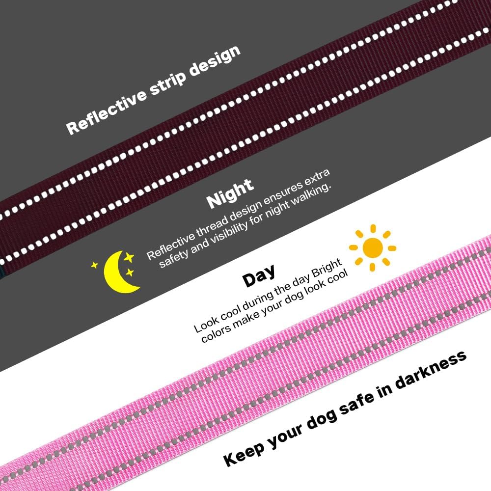About this item ðNo-Pull Headcollar â Effectively reduces leash-pulling by applying gentle nose pressure to redirect your dog's head toward you, enabling effortless directional control. Ideal for strong pullers, this training aid uses natural instinct to discourage tugging without force. Recommended for stubborn or powerful breeds. ð·ADJUSTABLE & REFLECTIVE â Features a quick-release neck buckle, adjustable chin clip, and customizable snout loop. Three sizes ensure a secure fit. Built-in reflective strips enhance visibility for safe nighttime walks. ðCOMFORTABLE & DURABLE â Crafted from durable nylon with a padded snout loop for ultimate comfort. Features adjustable straps and a stress-free design. Use treats during fitting to encourage acceptance. ð¶IDEAL FOR LONG-NOSED DOGS - our headcollar perfectly fits most long-snouted breeds, but not short-nosed ones like Pugs or Bulldogs. Ensure a secure and comfortable fit for your furry friend with a muzzle designed for elongated snouts. Perfect for daily walks, training, or outings. ð¬AFTER-SALES SUPPORT â Your satisfaction drives us. Contact us anytime for quality concerns with 24-hour response assurance. ⺠See more product details